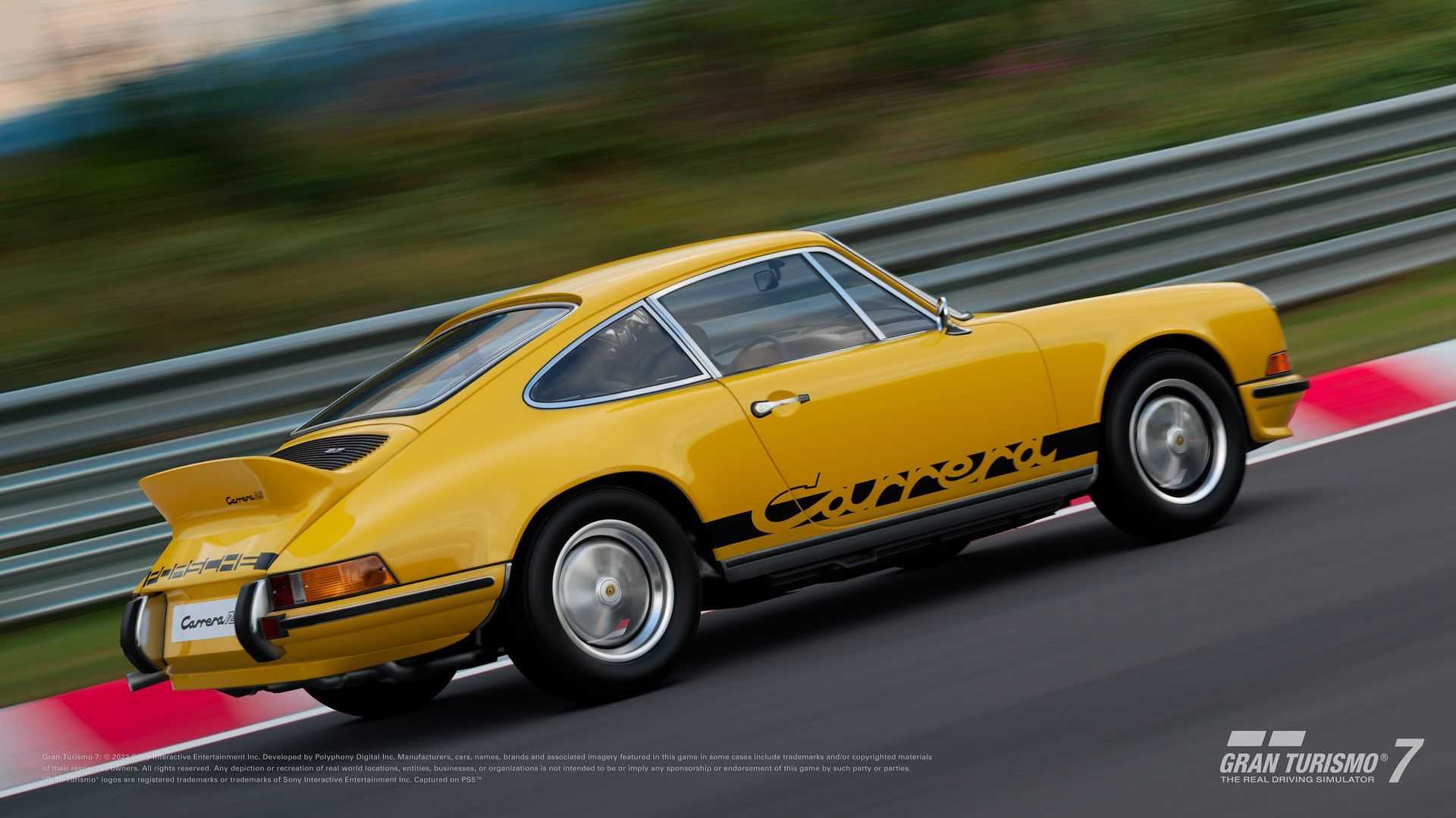Από τις προσθήκες δεν θα μπορούσε να λείπει και η αγαπημένη του παιχνιδιού 911, καθώς το γερμανικό sportscar συμμετέχει στο παιχνίδι με ουκ ολίγες παραλλαγές του. Αυτή την φορά πρόκειται για την 911 Carrera RS του 1973 η οποία μάλιστα προσφάτως γιόρτασε τα 50στά της γενέθλια με την συνδρομή των Walter Rorhrl και Timo Bernhard που ανέλαβαν να θυμίσουν επί το έργον την ιστορία του μοντέλου που στην εποχή του υπήρξε η κορυφαία έκδοση της 911. Φυσικά και στην ψηφιακή εκδοχή του Gran Turismo, οι σχεδιαστές έχουν σεβαστεί πλήρως τους χρωματισμούς και τα ιδιαίτερα σχεδιαστικά χαρακτηριστικά της αρχετυπικής 911, αν και σε ότι αφορά το πρώτο, υπάρχουν πολλαπλές επιλογές.