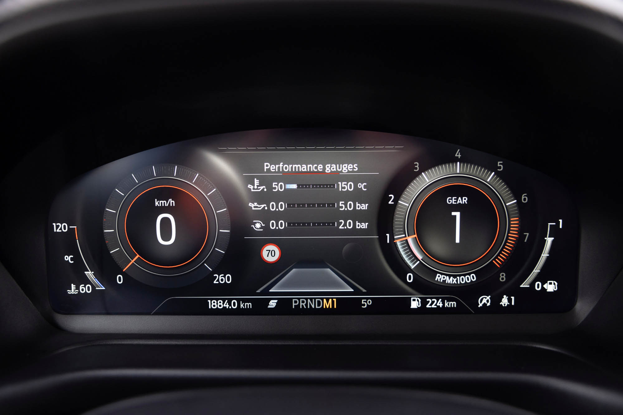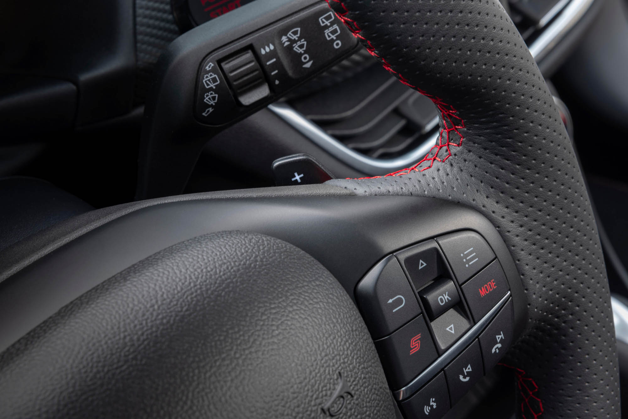 Στο εσωτερικό, τα στάνταρ χαρακτηριστικά περιλαμβάνουν σπορ καθίσματα εξελιγμένα από την Ford Performance, φινιρισμένα με premium συνθετικό υλικό Sensico με δερμάτινη αίσθηση, βάση ασύρματης φόρτισης, θερμαινόμενο παρμπρίζ Quickclear, εμπρός και πίσω αισθητήρες στάθμευσης, υαλοκαθαριστήρες με αισθητήρα βροχής, μόντεμ FordPass Connect, και  σύστημα επικοινωνίας και ψυχαγωγίας SYNC 3 της Ford, συμβατό με Apple CarPlay και Android Auto.