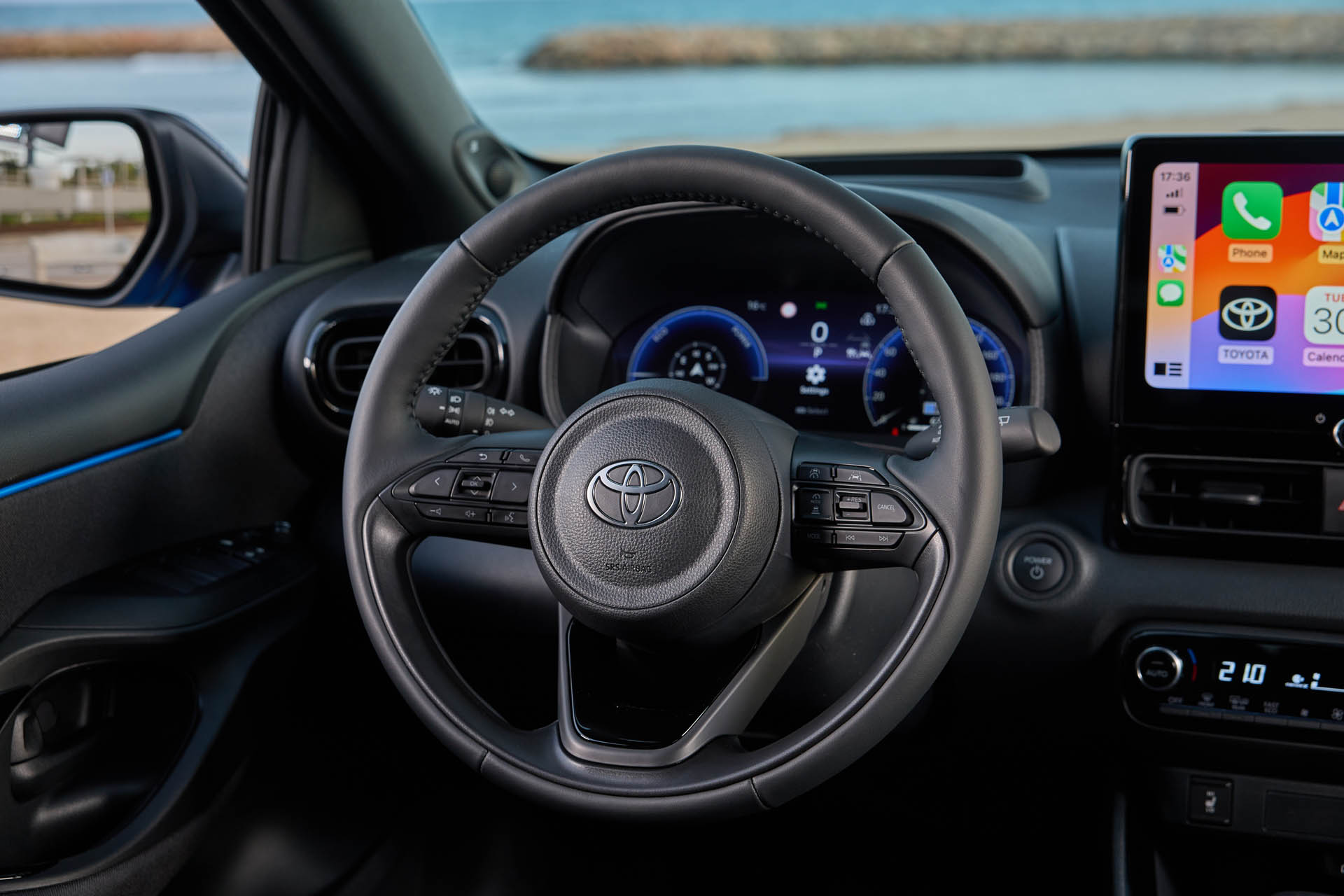Η γκάμα του Yaris διαθέτει νέα κορυφαία έκδοση εξοπλισμού με τη μορφή του Premiere Edition, που ξεχωρίζει από τη στάνταρ διχρωμία, η οποία συνδυάζει ένα αποκλειστικό νέο χρώμα Neptune Blue με αντίθεση τη γυαλιστερή μαύρη οροφή (και κολόνες), καθώς και νέες μαύρες ζάντες 17”.
