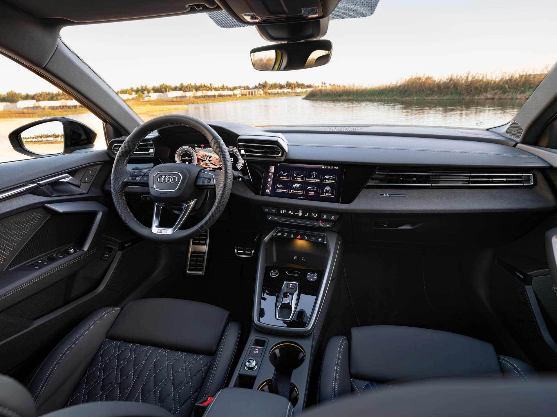 Η τεχνολογία κάνει επίσης ένα βήμα προς τα πάνω. Όλα τα Audi A3 διαθέτουν οθόνη αφής 10,1” και το Audi Virtual Cockpit. Υπάρχουν πλέον δύο θύρες φόρτισης USB-C μπροστά, άλλες δύο πίσω και μία πλατφόρμα ασύρματης φόρτισης, και όλα περιλαμβάνονται στο στάνταρ εξοπλισμό. Το σύστημα infotainment MMI μπορεί να προσαρμοστεί με ένα ευρύ φάσμα εφαρμογών, συμπεριλαμβανομένου της Alexa της Amazon. Τα Apple CarPlay και Android Auto είναι επίσης διαθέσιμα.