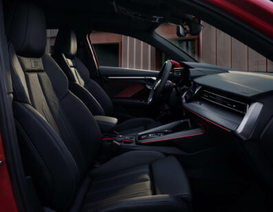 Στο εμπρός μέρος, υπάρχει μια πιο επίπεδη σχεδίαση μάσκας και μεγάλες, γωνιώδεις εισαγωγές αέρα, που συμπληρώνοται από το νέο έμβλημα τεσσάρων δακτυλίων που είδαμε για πρώτη φορά στο Audi Q8 e-tron SUV. Στο πίσω μέρος, το A3 αποκτά νέο προφυλακτήρα και διαχύτη, στοιχεία που είναι εμπνευσμένα από τα μοντέλα RS.