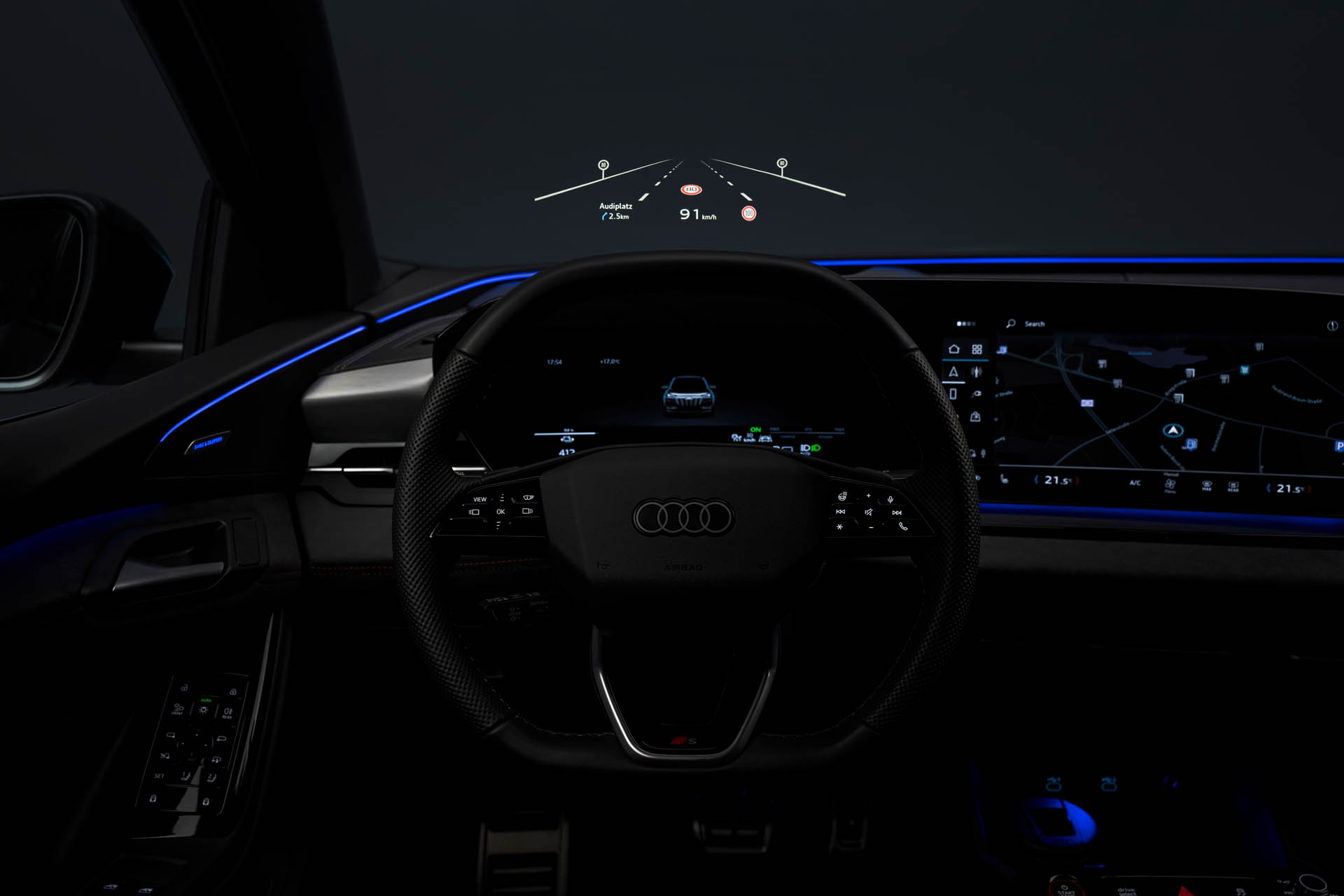 Το λειτουργικό σύστημα που βασίζεται στο Android, στεγάζει τα περισσότερα χειριστήρια σε αυτή την οθόνη. Η Audi αναφέρει ότι οι φωνητικές εντολές είναι ο πιο εύκολος τρόπος ρύθμισης του κλιματισμού. Μέχρι και 800 λειτουργίες μπορούν να ελεγχθούν από μια σειρά 100 αλληλεπιδράσεων μέσω του φωνητικού βοηθού «Hey Audi», ο οποίος μπορεί να μάθει τις φωνητικές εντολές τόσο του οδηγού όσο και του συνοδηγού και να κάνει ακόμη και προτάσεις με βάση τις προηγούμενες συνήθειες. Ο συνοδηγός λαμβάνει επίσης μια τριτεύουσα οθόνη 10,9”, η οποία του επιτρέπει να αλλάζει τις ρυθμίσεις.