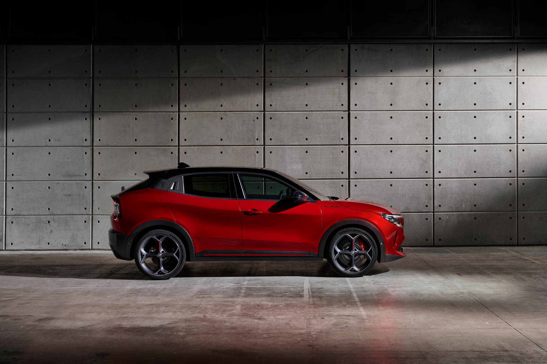 Η Alfa Romeo Milano χρησιμοποιεί την αρθρωτή πλατφόρμα e-CMP2 του Ομίλου και θα προσφέρεται με αμιγώς ηλεκτρικό σύστημα κίνησης και ήπια υβριδικό (με σύστημα 48V) βενζινοκινητήρα. Η Milano είναι ένα από τα μεγαλύτερα αυτοκίνητα που βασίζονται στην e-CMP2, με μήκος 4,17 μέτρα και καταφέρνει να δείχνει ξεχωριστή χάρη στον αιχμηρό σχεδιασμό. Το εμπρός μέρος διαθέτει εξαιρετικά λεπτά φωτιστικά σώματα, με μια μαύρη γρίλια τοποθετημένη χαμηλά και τη μάσκα «ασπίδας» της Alfa Romeo.
