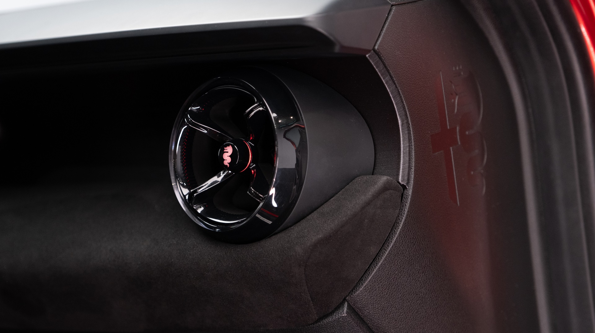 Από εκεί και πέρα, ξεχωρίζουν η υπερυψωμένη κονσόλα με τον επιλογέα κίνησης, τα ελαφριά μπάκετ της Sabelt, οι αεραγωγοί με το έμβλημα της μάρκας στο κέντρο και τα πολυτελή υλικά στο μεγαλύτερο μέρος του εσωτερικού. Μικρή παραφωνία αποτελεί το σκληρό πλαστικό στο επάνω μέρος του ταμπλό.