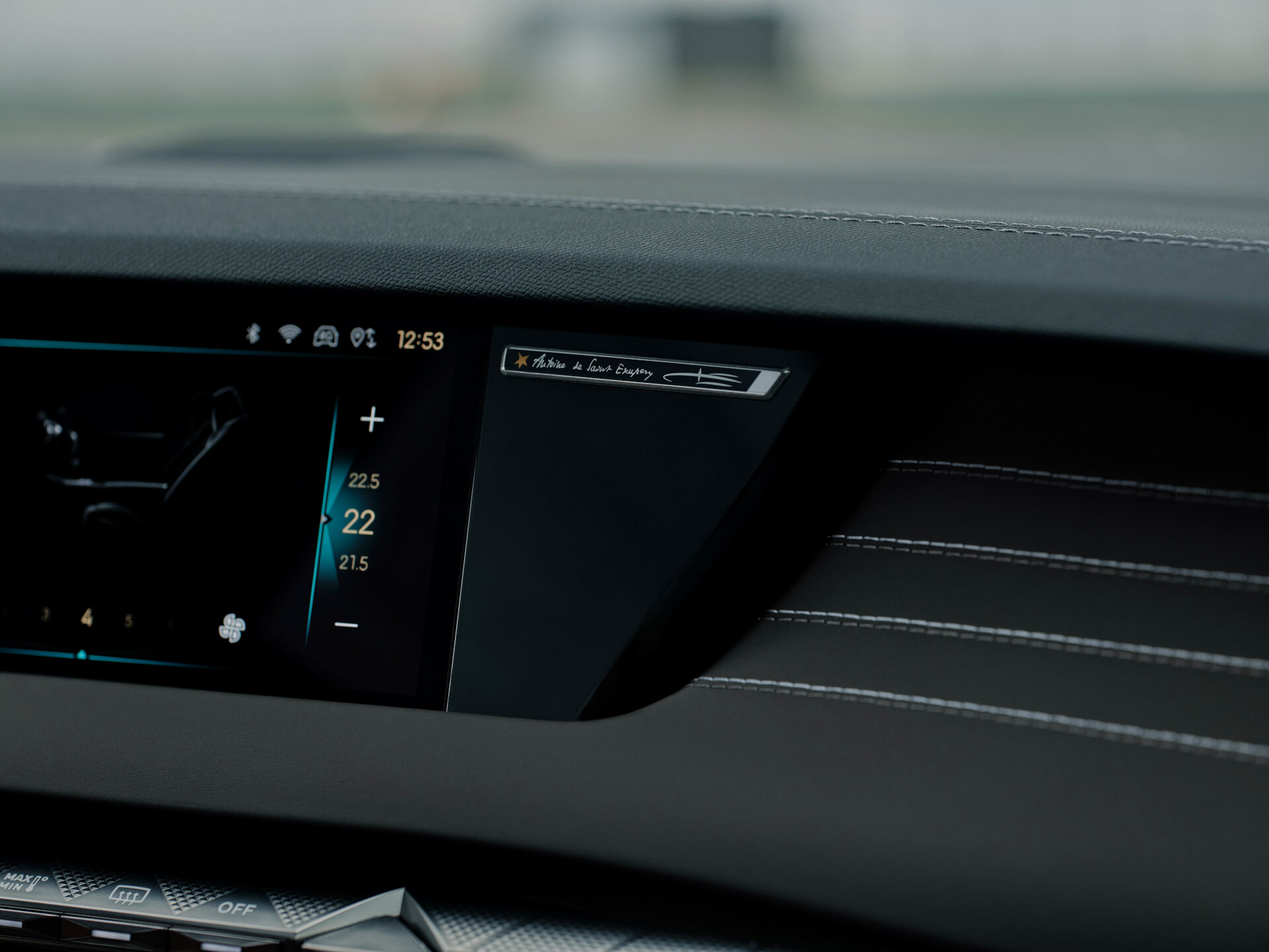Το ζεστό δέρμα Nappa Criollo Brown συνοδεύεται από μια καινούργια τεχνική κεντήματος στο τελείωμα του ταμπλό για να θυμίζει το ίχνος ατμών ενός αεροσκάφους. Διάφορα εσωτερικά και εξωτερικά ένθετα, καθώς και διακοσμητικά στα μαρσπιέ των θυρών, ολοκληρώνουν την υπογραφή της αποκλειστικής συλλογής. Αυτές οι πινακίδες περιλαμβάνουν αποσπάσματα και σχέδια, από τα εμπνευσμένα έργα, και την υπογραφή του Antoine de Saint Exupéry.