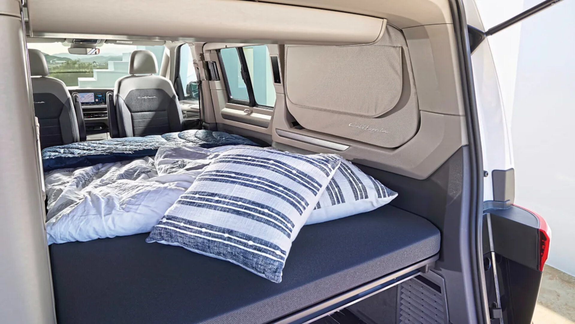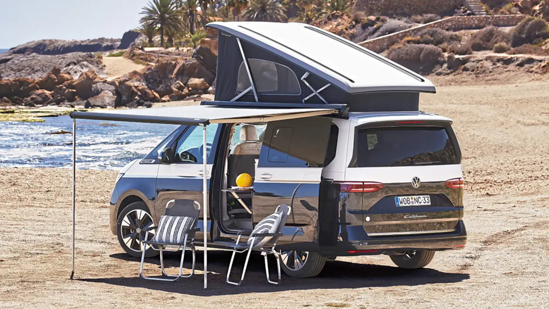 Τρεις εκδόσεις του νέου California θα προσφέρονται στις ευρωπαϊκές αγορές. Η California Beach ξεκινά τη γκάμα με πέντε θέσεις (με την επιλογή έξι θέσεων) και χειροκίνητη αναδιπλούμενη οροφή. Αυτό το μοντέλο διαθέτει και μια «μίνι-κουζίνα» με απλές εστίες αερίου, συρτάρι για μαχαιροπίρουνα και μονάδα αποθήκευσης.