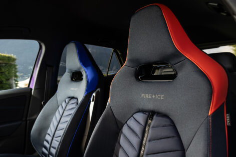 Το εσωτερικό χωρίζεται σε δύο αποχρώσεις: την «φωτιά» που βρίσκεται στην πλευρά του οδηγού, αλλά και τον «πάγο» στην πλευρά του συνοδηγού. Τα καθίσματα  έχουν αντίστοιχα επενδύσεις κόκκινου και μπλε χρώματος, ενώ στη μέση τους έχουν φερμουάρ, τα οποία αποκαλύπτουν την ίδια επένδυση που είχε και το πρώτο Golf «Fire and Ice».