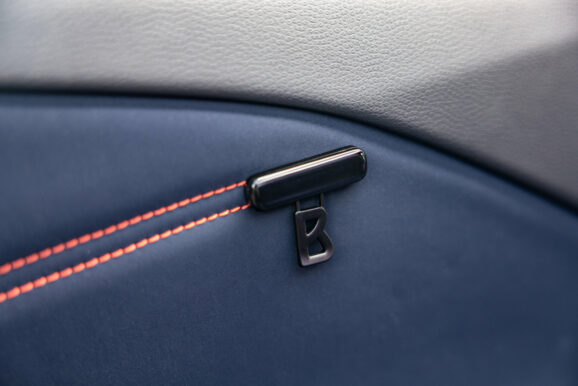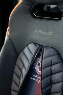 Στα πλαϊνά του οχήματος κυριαρχεί η επένδυση με το γεωμετρικό μοτίβο Fire + Ice, σε διαφανές ματ χρώμα. Ένα άλλο ιδιαίτερο χαρακτηριστικό είναι οι ζάντες 21 ιντσών, οι οποίες τονίζουν τη δυναμική εμφάνιση με ένα μπλε ανοδιωμένο φινίρισμα.