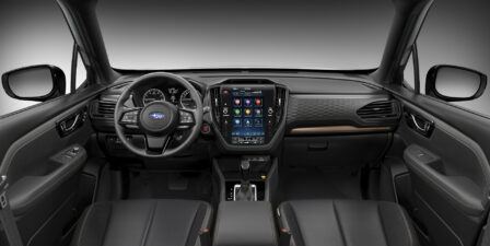 Το εσωτερικό του Forester έχει ανανεωθεί χάρη στις νέες σχεδιαστικές γραμμές του που το διατρέχουν, την ευρυχωρία του, τα νέα υλικά για την κατασκευή του, και την τοποθέτηση και οργάνωση τόσο του πίνακα οργάνων όσο και την κεντρικής οθόνης, διαμέτρου 11,6 ιντσών.