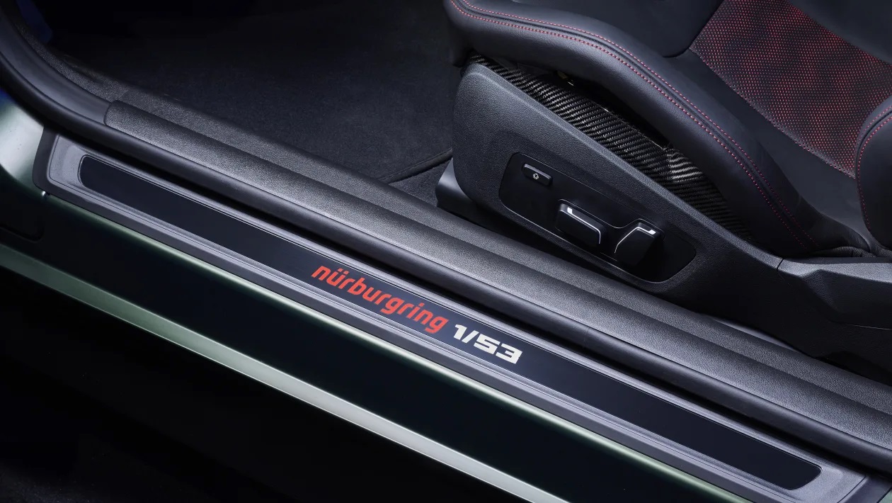 Μεταξύ αυτών, η χαρακτηριστική μάσκα χωρίς πλαίσιο που περιβάλλεται από έντονο κόκκινο χρώμα, η ειδική μεταλλική βαφή BMW Individual Frozen Deep Green και το κόκκινο λογότυπο του Nürburgring Nordschleife που υπάρχει κεντημένο στα προσκέφαλα.