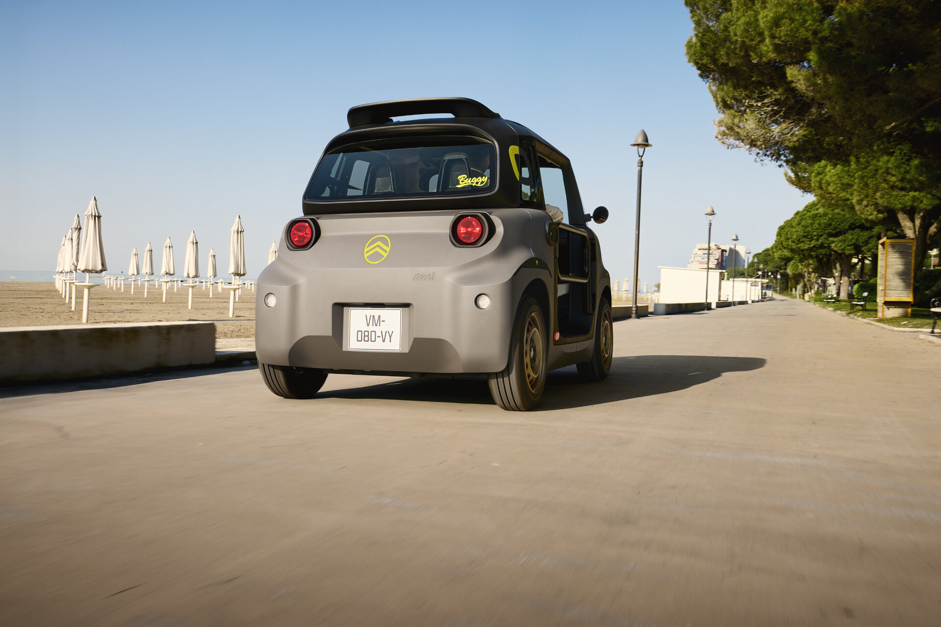 Το Buggy ξεχωρίζει από την βασική εκδοχή του Ami χάρη στην υφασμάτινη ανοιγόμενη οροφή, την αεροτομή στο πίσω μέρος, τα κίτρινα λογότυπα, τους ατσάλινους τροχούς 14 ιντσών σε χρυσό χρώμα και τις μπάρες που διαθέτει – αντί για πόρτες. Όλες οι παραπάνω αλλαγές προσφέρουν έναν πιο εκδρομικό χαρακτήρα στο αμιγώς ηλεκτρικό microcar.