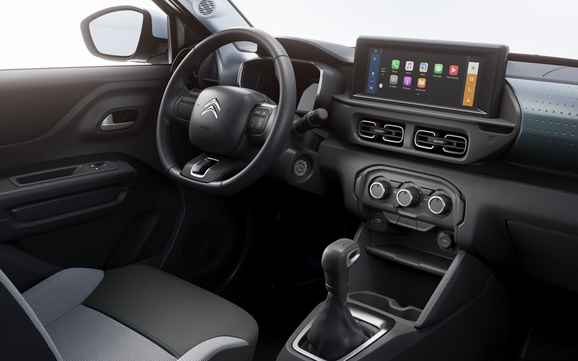Στο κέντρο του ταμπλό υπάρχει μια μεγάλη οθόνη αφής 10 ιντσών του συστήματος πολυμέσων που είναι συμβατή με Android Auto kai Apple CarPlay, ενώ πίσω της υπάρχει και ένας μικρός αποθηκευτικός χώρος. Πάντως, εκτός από τη μεγάλη οθόνη αφής, το «νέο» C3 διατηρεί αρκετά φυσικά πλήκτρα για καλύτερη εργονομία. Επίσης, διαθέσιμες είναι και τρεις υποδοχές για φόρτιση, μία εμπρός και δύο πίσω.