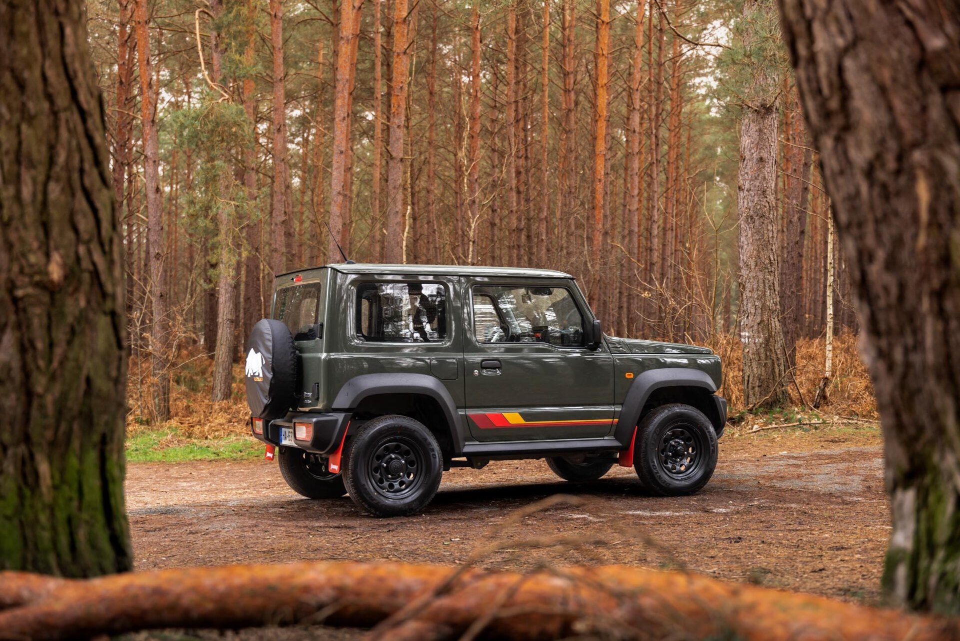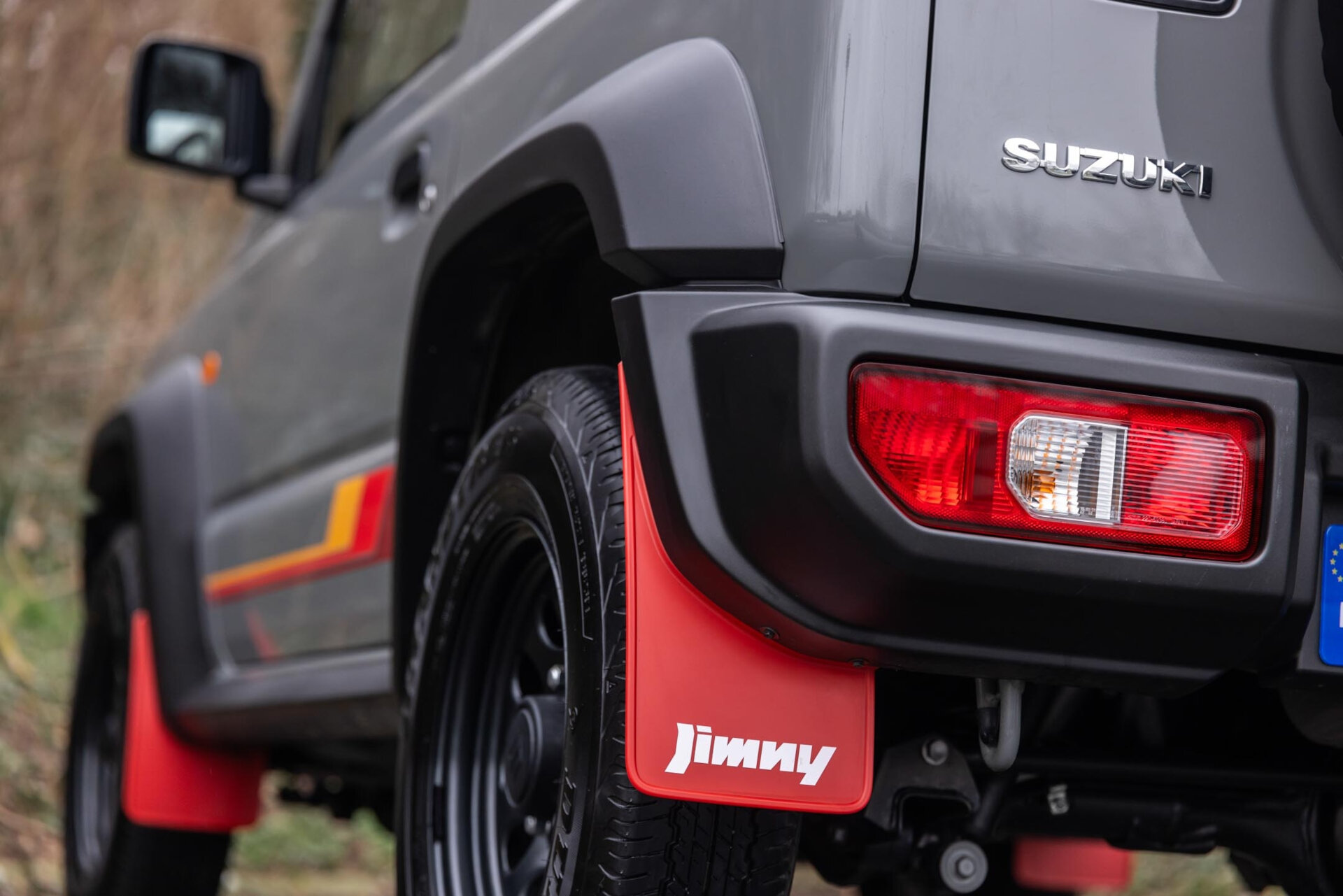 Εμφανισιακά η νέα έκδοση ξεχωρίζει από την νέα μάσκα – στην οποία πάνω της αναγράφεται «Suzuki», τα ρετρό αυτοκόλλητα στα πλαϊνά, τους κόκκινους λασπωτήρες και το κάλυμμα της ρεζέρβας, η οποία φέρει το σήμα με τον ρινόκερο. Ο ρινόκερος για την Suzuki έχει ιδιαίτερη σημασία – πρόκειται για ένα λογότυπο που εμφανίστηκε το 1981 στο Jimny για να συμβολίσει την «αγάπη για την φύση και την αίσθηση ελευθερίας».