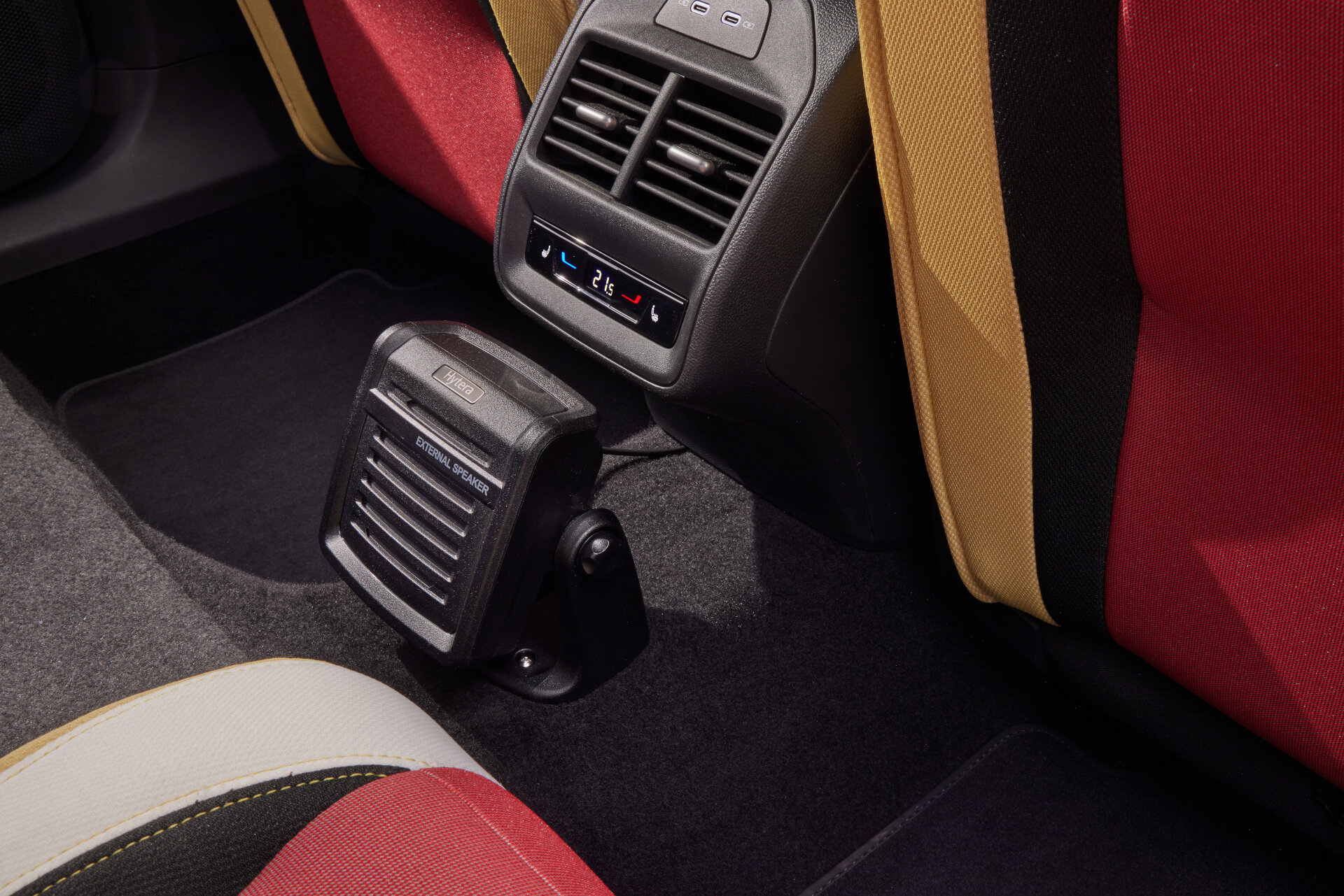 Στο εσωτερικό τα τρία πίσω καθίσματα μετατράπηκαν σε μόλις ένα. Την θέση των άλλων δύο καθισμάτων καταλαμβάνουν ένα φορητό ηχείο μεγάλων διαστάσεων και ένας ψύκτης. Στο μπροστινό μέρος, η Skoda πρόσθεσε έναν ραδιοφωνικό πομπό και ένα tablet που προβάλλει υλικό από μια κάμερα τοποθετημένη στο πίσω μέρος του αυτοκινήτου.