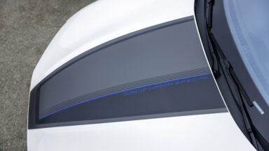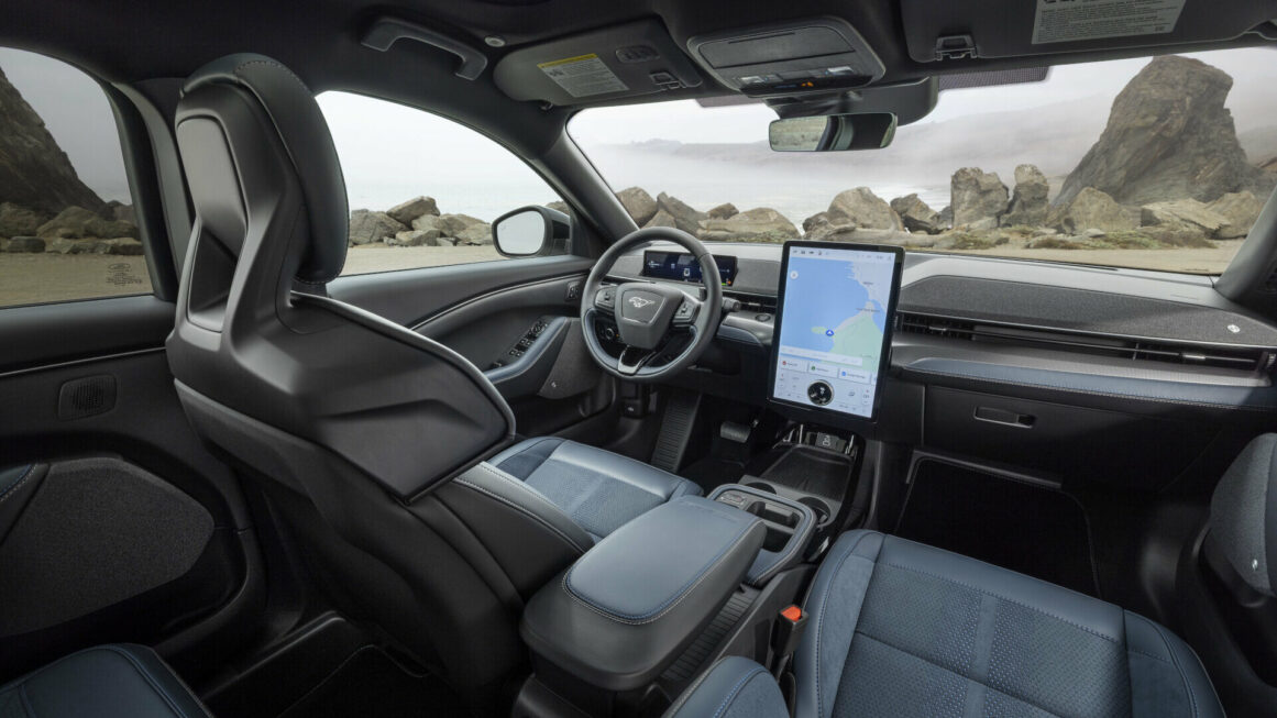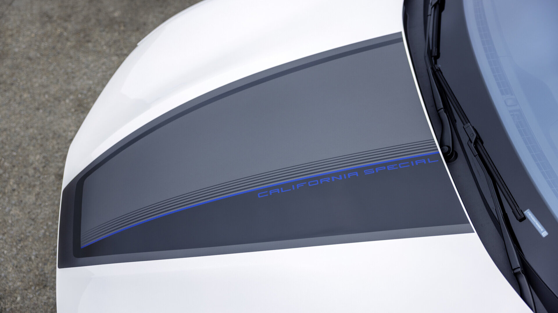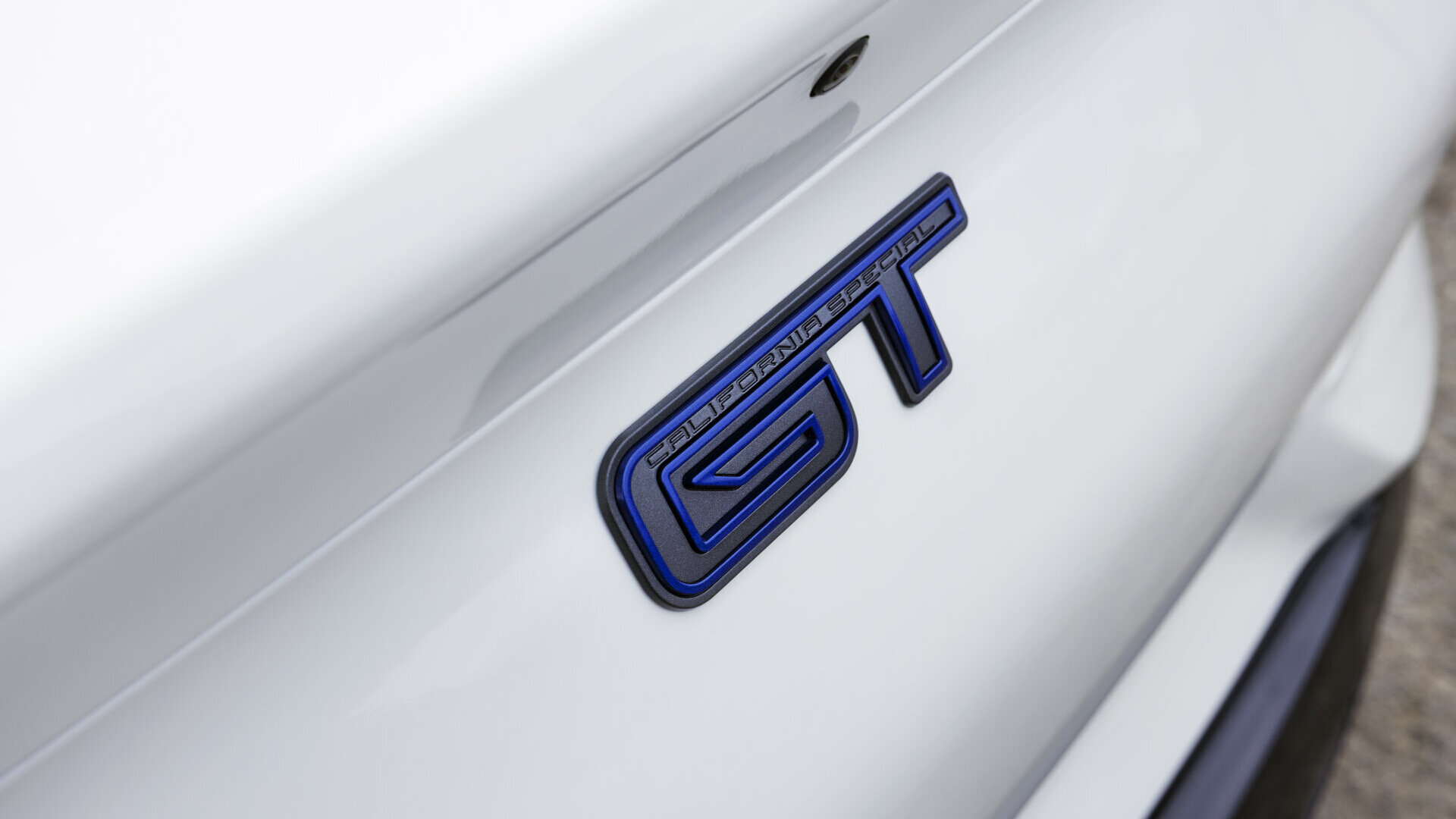 Η νέα Mustang Mach-E GT California Special διαθέτει φωτιζόμενο έμβλημα σε χρώμα Rave Blue, καθώς και επανασχεδιασμένες ζάντες 20 ιντσών. Υπάρχουν επίσης ειδικά σήματα, καθώς και ένα νέο γραφικό στο καπό, πάλι στην απόχρωση Rave Blue.