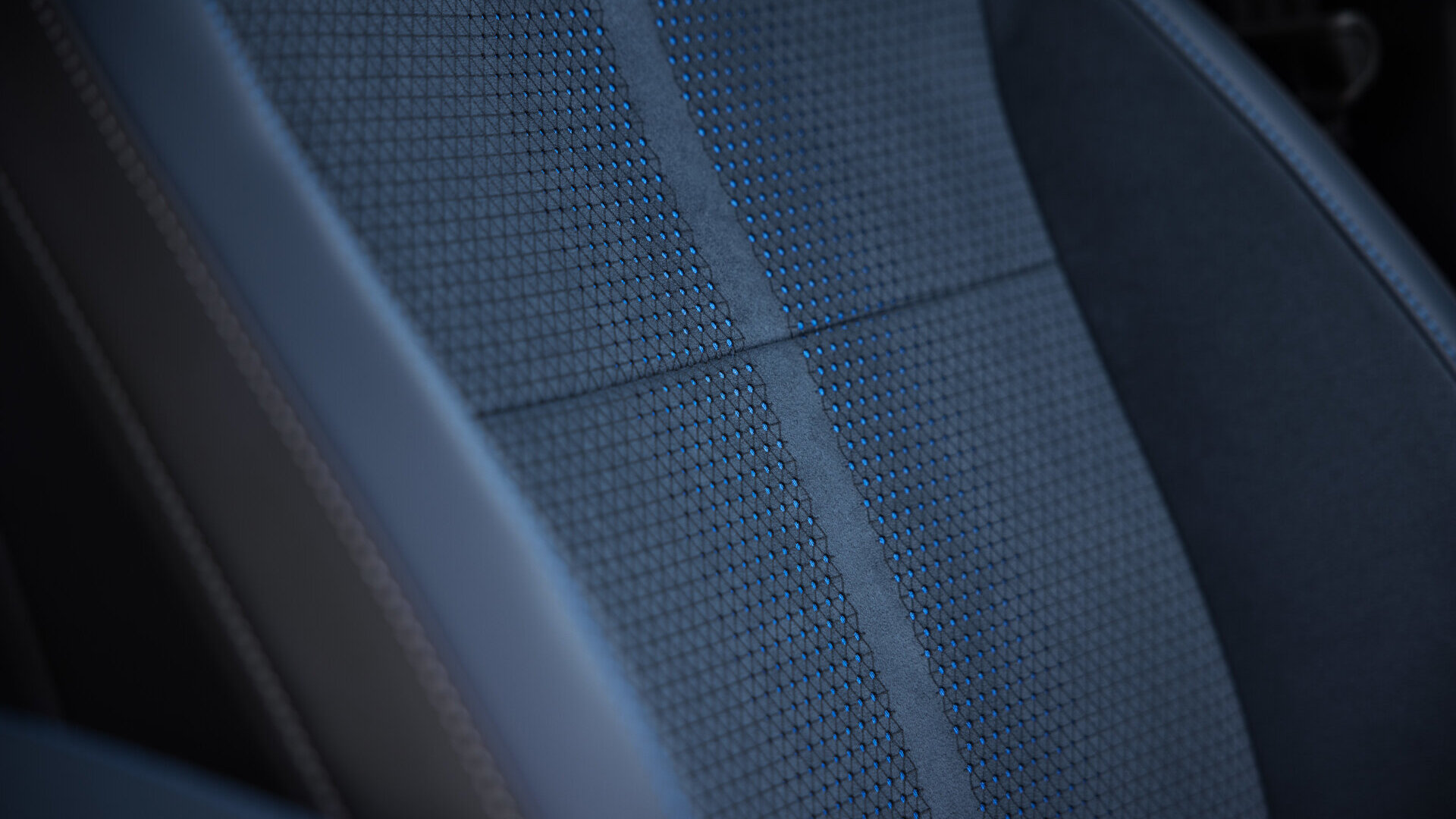 Στο εσωτερικό οι αναβαθμίσεις συνεχίζονται. Τα σπορ καθίσματα διαθέτουν επένδυση από υλικά Navy Pier ActiveX και Miko, με ανακλαστικές μπλε και ασημί λεπτομέρειες. Η κεντρική κονσόλα και το τιμόνι έχουν επίσης τις ίδιες επενδύσεις, ενώ τα πατάκια διαθέτουν μπλε και ασημί ραφές, στο ίδιο μοτίβο με τα καθίσματα.