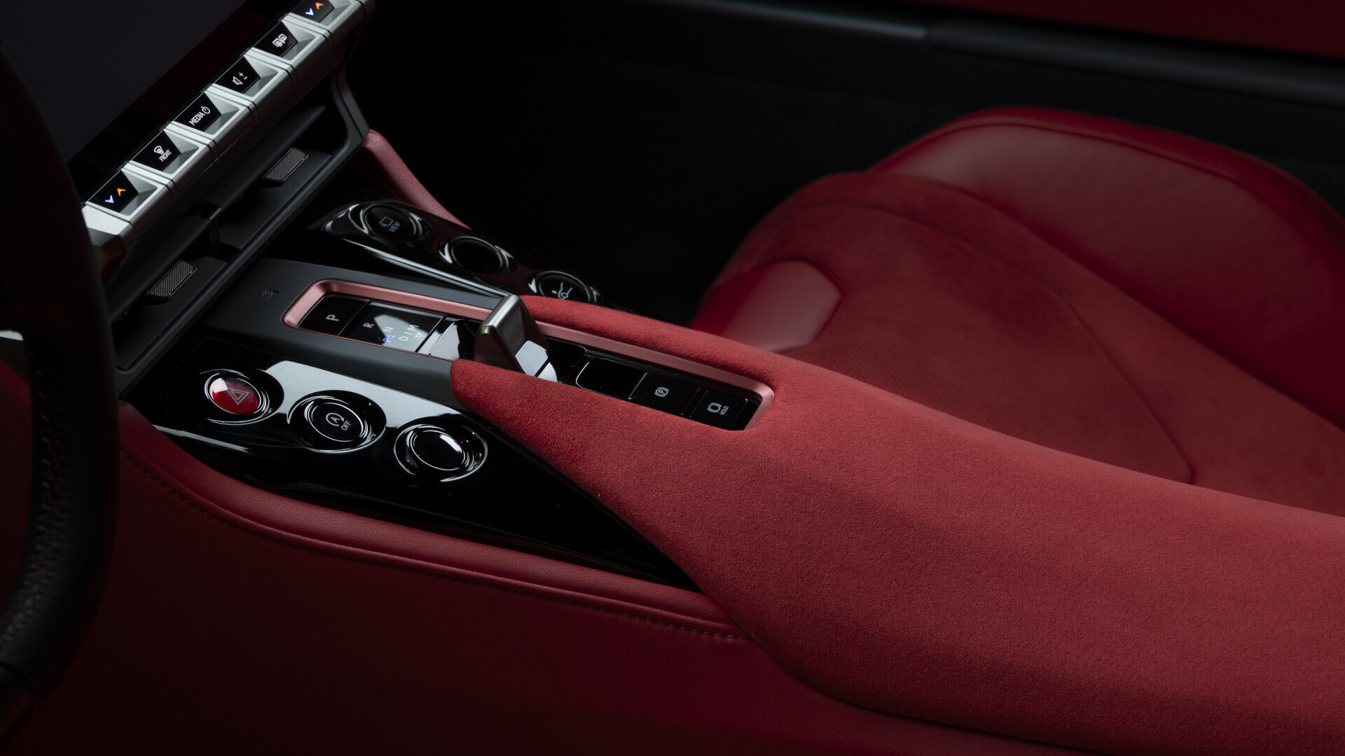 Το ταμπλό έχει αρκετά απλή διάταξη, με μια κύρια οθόνη αφής που συνοδεύεται από μερικά φυσικά χειριστήρια για τον κλιματισμό, καθώς και μερικά ακόμη κουμπιά στην κεντρική κονσόλα. Πρόκειται για ένα αυστηρά διθέσιο αυτοκίνητο, με καθίσματα τύπου bucket της Recaro που έχουν πλαίσιο από ανθρακονήματα.