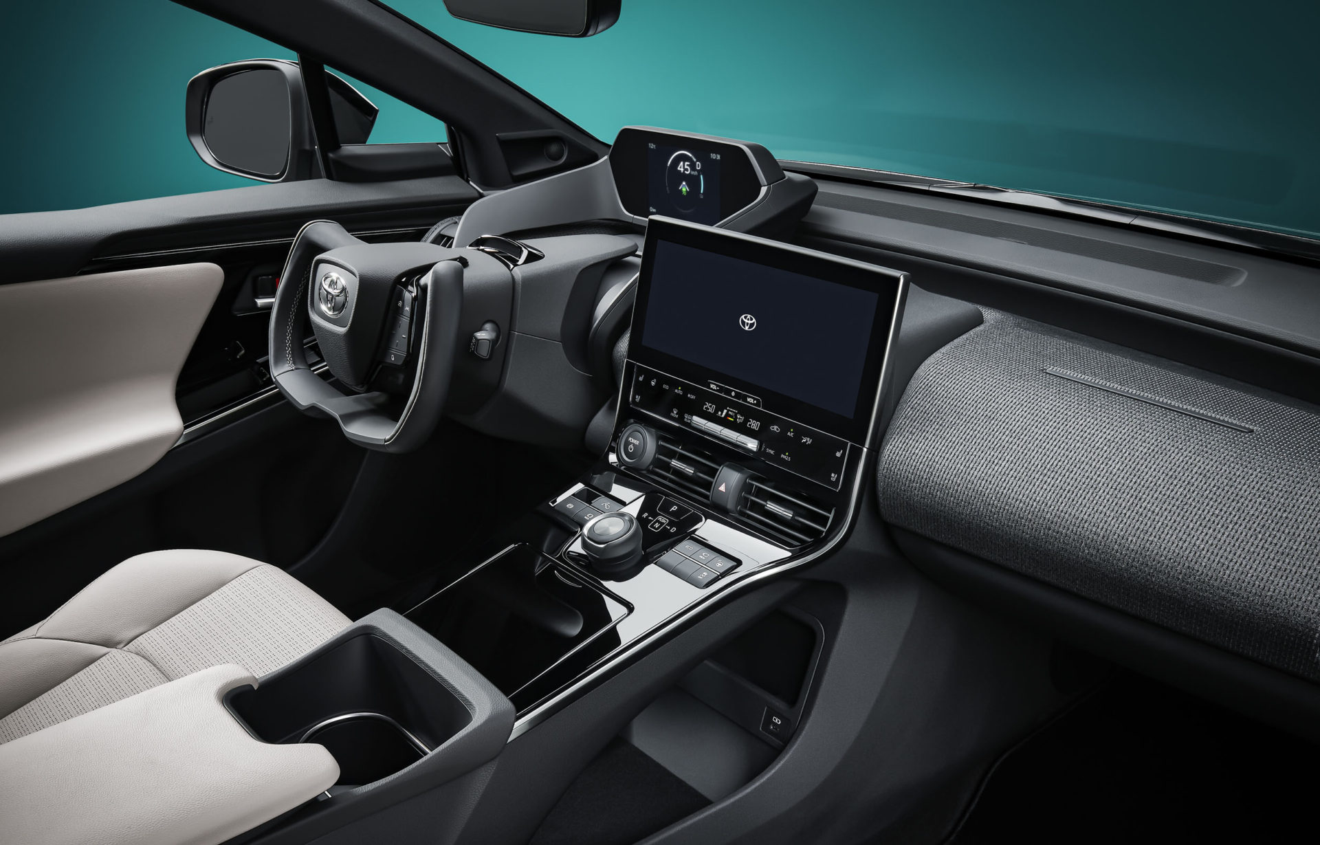 Η Toyota προσπάθησε να συνδυάσει  στο εσωτερικό του bZ4X τις high tech λεπτομέρειες με την πρακτικότητα ενός οικογενειακού μοντέλου. Το αεροπορικού τύπου τιμόνι δεν κρύβει από τον οδηγό τον πίνακα οργάνων που έχει τοποθετηθεί ψηλά, στη λογική ενός head-up display. Η μεγάλη οθόνη του συστήματος πολυμέσων αποτελεί συνέχεια προς τα πάνω της κεντρικής κονσόλας, η οποία φιλοξενεί τους διακόπτες του κιβωτίου και των συστημάτων υποβοήθησης του οδηγού.