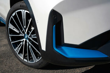 Οπτικά. η iX1 είναι σχεδόν πανομοιότυπη με τα αδέρφια της με κινητήρα εσωτερικής καύσης, με μικρές μόνο αεροδυναμικές βελτιώσεις για την αύξηση της αποδοτικότητάς του (ο συντελεστής οπισθέλκουσας είναι 0,26 Cd) και τις συνήθεις μπλε πινελιές της BMW για να τονιστεί το σύστημα κίνησης μηδενικών εκπομπών ρύπων.