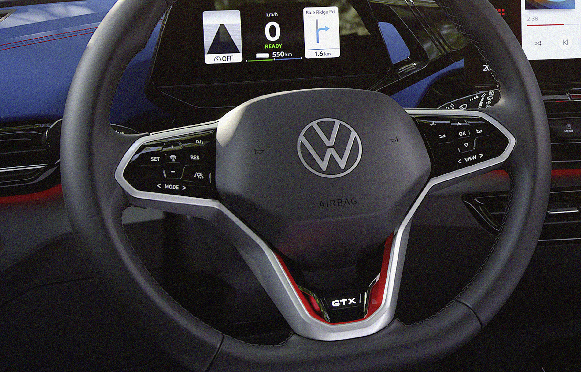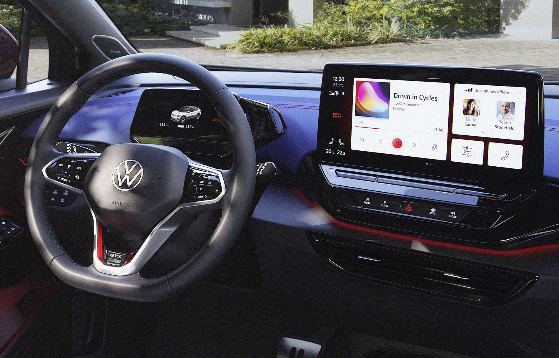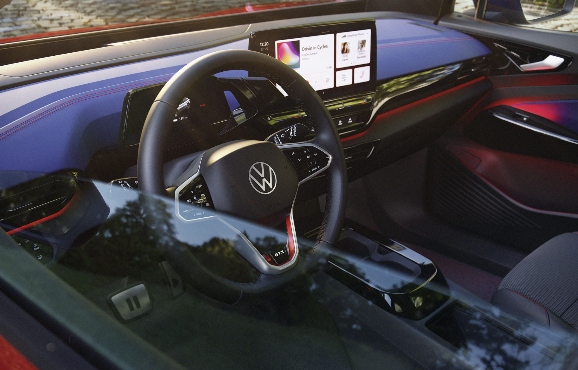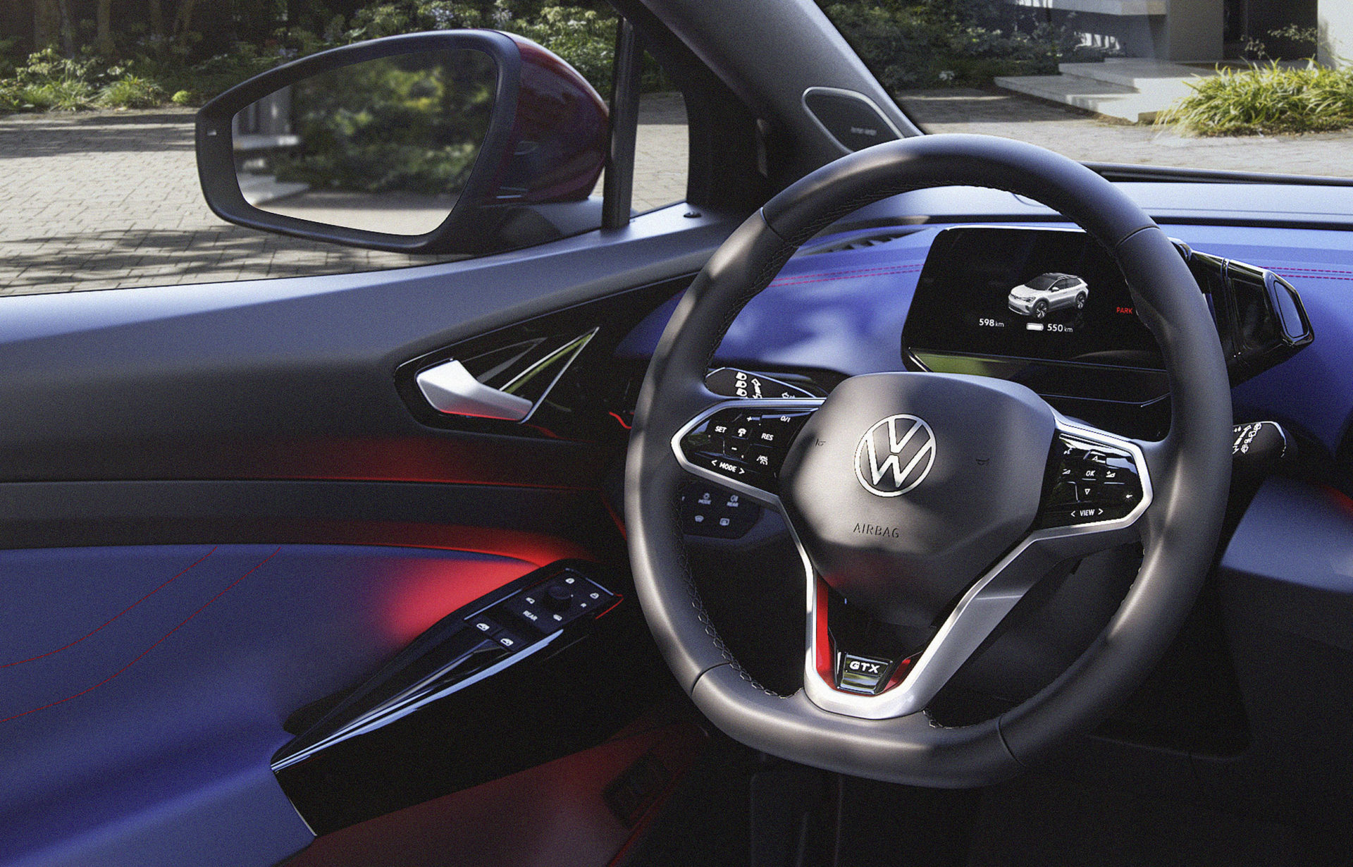Σημεία στο αμάξωμα του ID.4 GTX αναλαμβάνουν να τονίσουν το δυναμικό του χαρακτήρα και να το διαφοροποιήσουν από το ID.4. Οι επανασχεδιασμένοι προφυλακτήρες, τα 3D LED πίσω φώτα που με τα φώτα φρένων σχηματίζουν το X, οι ράγες οροφής σε γυαλιστερό ανθρακί, η μαύρη οροφή και πίσω αεροτομή, οι μεγάλοι τροχοί, είναι ορισμένα από αυτά. Λεπτομέρειες όπως οι κόκκινες ραφές, οι επιφάνειες από δερματίνη και το λογότυπο GTX στο τιμόνι και στα εμπρός καθίσματα, δίνουν το… σύνθημα στον οδηγό και τους επιβάτες.