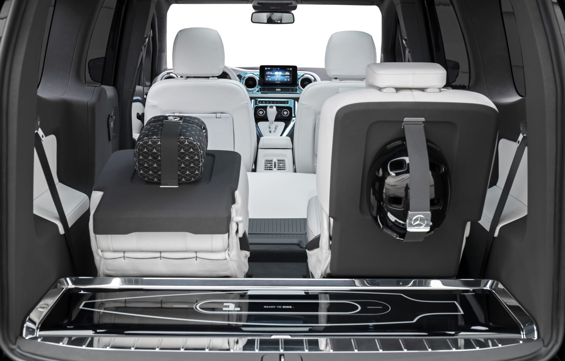 Στο αμάξωμα ξεχωρίζουν η φωτιζόμενη μάσκα με τα 3D αστέρια που εκτείνεται έως τα λεπτά LED φωτιστικά σώματα, οι μεγάλοι τροχοί των 21 ιντσών και οι λεπτομέρειες χρωμίου. Πολυτελές και χρηστικό το εσωτερικό, με λευκές δερμάτινες επενδύσεις nappa στα καθίσματα και ψηφιακές οθόνες στον πίνακα οργάνων και την κεντρική κονσόλα.