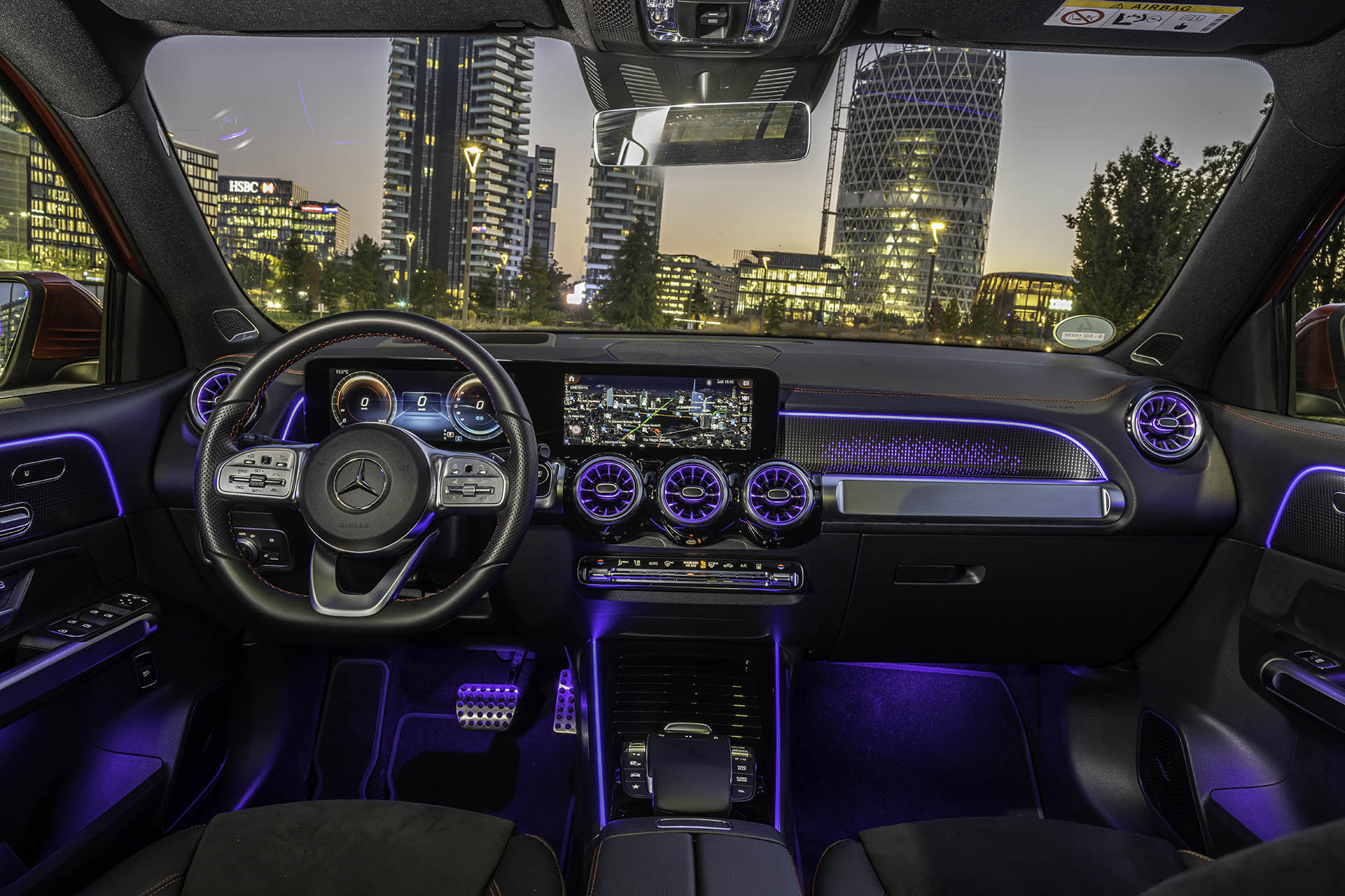 Δυο μεγάλες δίδυμες οθόνες στην κορυφή του ταμπλό, αποτελούν το κέντρο ελέγχου για οδηγό και συνοδηγό. Η οθόνη αφής του συστήματος πολυμέσων MBUX με διαγώνιο 10,25 ιντσών προβάλει σε υψηλή ανάλυση όλες τις πληροφορίες και με επένδυση κρυστάλλου κάνει εύκολο το χειρισμό, όπως ακριβώς αυτόν ενός smartphone, παρέχοντας παράλληλα ενημέρωση για διαθέσιμους σταθμούς φόρτισης, αλλά και μέσω του GPS την πιο αποδοτική διαδρομή.
