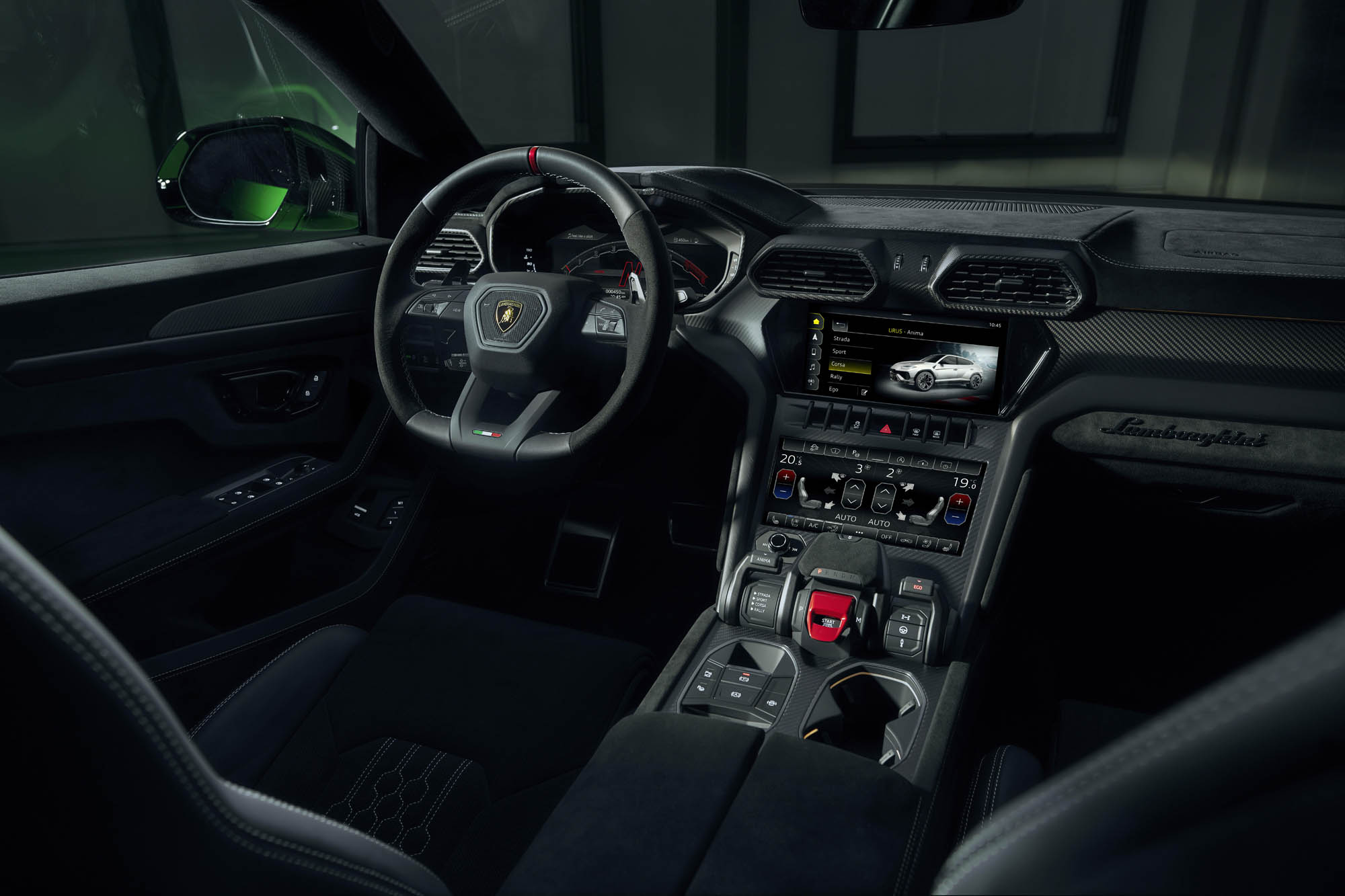 Το εσωτερικό δεν είναι γυμνό, στα αγωνιστικά πρότυπα, αλλά πολυτελές, με επενδύσεις από αλκαντάρα, με εξαγωνικές ραφές, ενώ υπάρχει η δυνατότητα επιλογής της ίδιας επένδυσης και στον ουρανό του αυτοκινήτου, στις πόρτες, τα πίσω καθίσματα, αλλά και στο χώρο αποσκευών. Με αλκαντάρα είναι επίσης ντυμένο και το τιμόνι, ενώ σε μαύρο χρώμα είναι και τα διακοσμητικά στοιχεία από αλουμίνιο. Ακόμα και οι οθόνες έχουν γραφικά Performante. Φυσικά υπάρχουν και πολλά πακέτα εξατομίκευσης. Η νέα Lamborghini Urus Performante θα είναι διαθέσιμη στην αγορά πριν το τέλος του έτους.