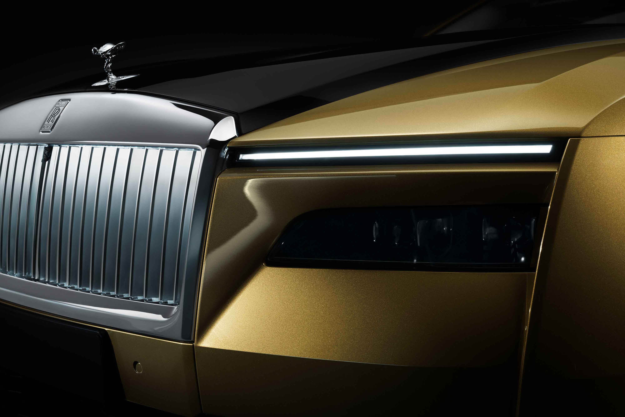 Επίσης, θα περιμέναμε να δείξει το δρόμο και στον σχεδιαστικό τομέα. Το σήμα κατατεθέν μιας Rolls-Royce είναι δίχως άλλο η εμβληματική μάσκα, η οποία για την περίσταση είναι πιο λεπτή, πιο πλατιά και πιο κομψή, ενώ είναι και φωτιζόμενη τη νύχτα. Ακόμα και το Spirit of Ecstasy, το αγαλματάκι στη μετώπη, έχει βελτιωθεί, έτσι ώστε να είναι όσον το δυνατόν πιο αεροδυναμικό, συμβάλλοντας στον εν γένει χαμηλό συντελεστή οπισθέλκουσας που περιορίζεται στα Cd 0,25.