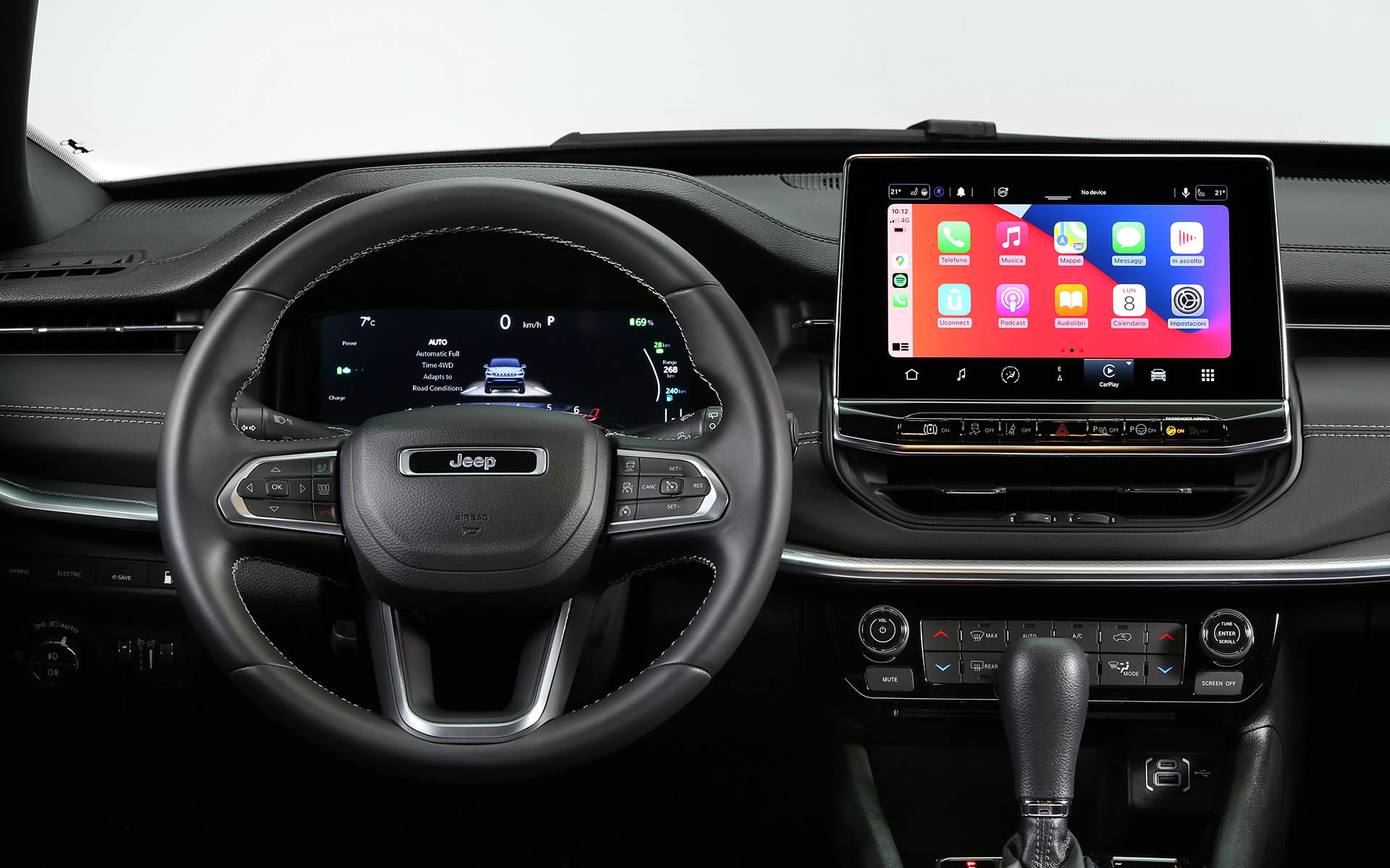 Ο premium χαρακτήρας του μοντέλου αναδεικνύεται και στο εσωτερικό του. Εκεί όπου η ποιότητα συναντά την πολυτέλεια και μαζί συνθέτουν ένα προηγμένο τεχνολογικά, πρακτικό εσωτερικό, που θα απολαύσεις στην καθημερινότητά σου. Το τεχνολογικό υπόβαθρο του Compass 4xe αντικατοπτρίζεται στα συστήματα με τα οποία εφοδιάζεται και είναι το Uconnect5, όσον αφορά το infotainment και το ADAS όσον αφορά τα συστήματα υποβοήθησης οδηγού.