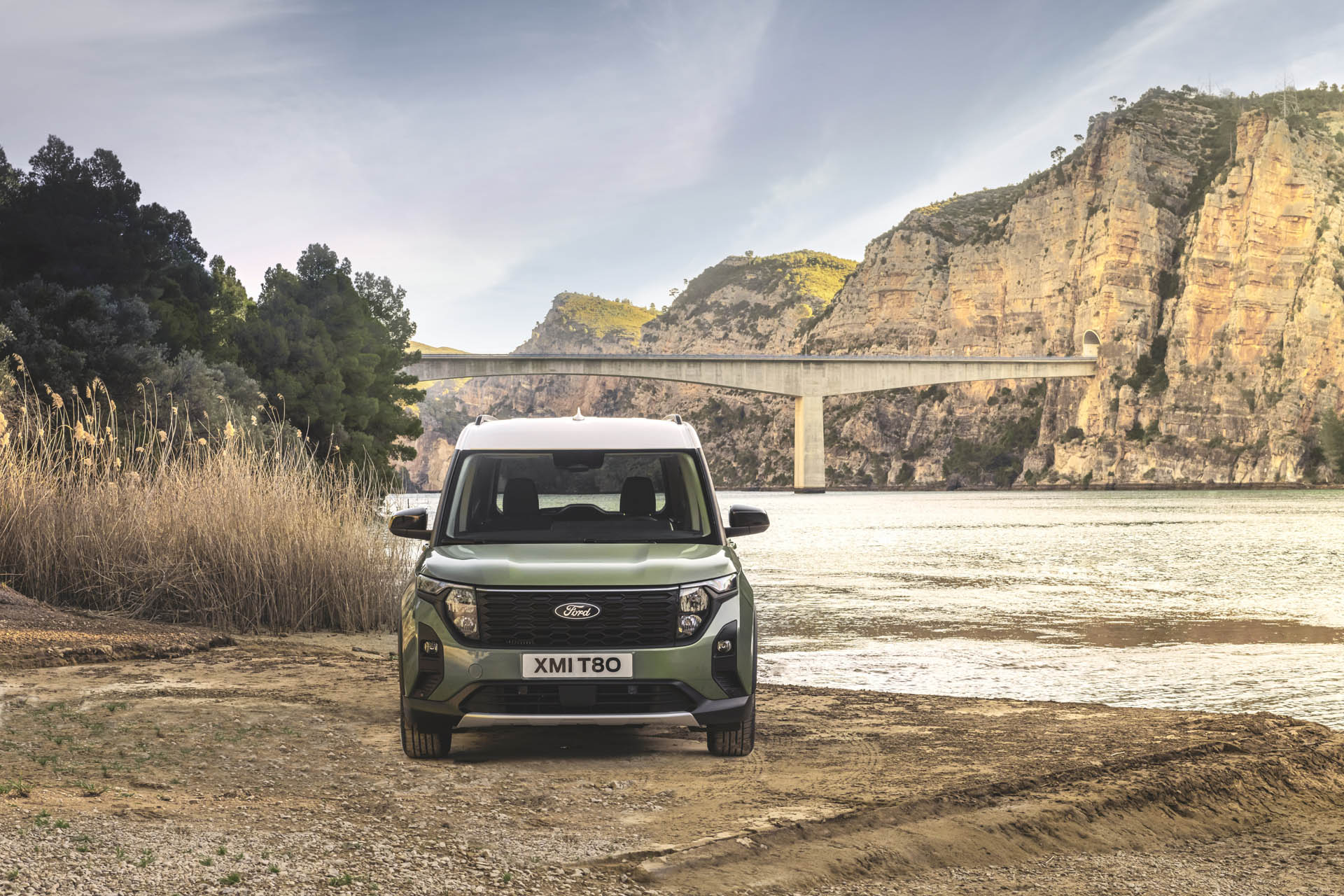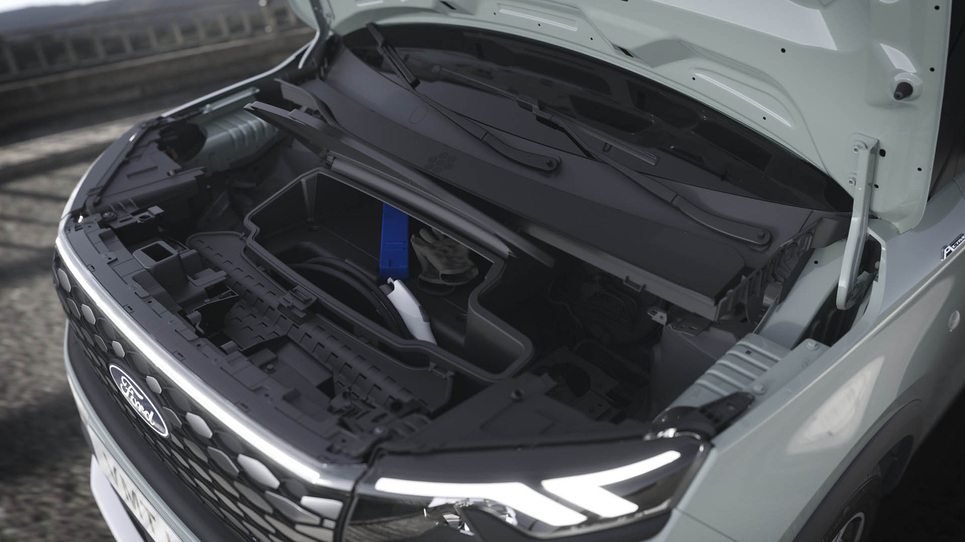 Οι κοντοί πρόβολοι και οι ευθείες γραμμές ενισχύουν το οπτικό πλάτος και τη στιβαρότητα, ενώ το εμπρός τμήμα -που προορίζεται αποκλειστικά για την ηλεκτρική έκδοση- διαθέτει μια φουτουριστική μπάρα φώτων που εκτείνεται από άκρη σε άκρη, σε συνδυασμό με τη χαρακτηριστική μάσκα της Ford με ρόμβους και επένδυση χρωμίου.