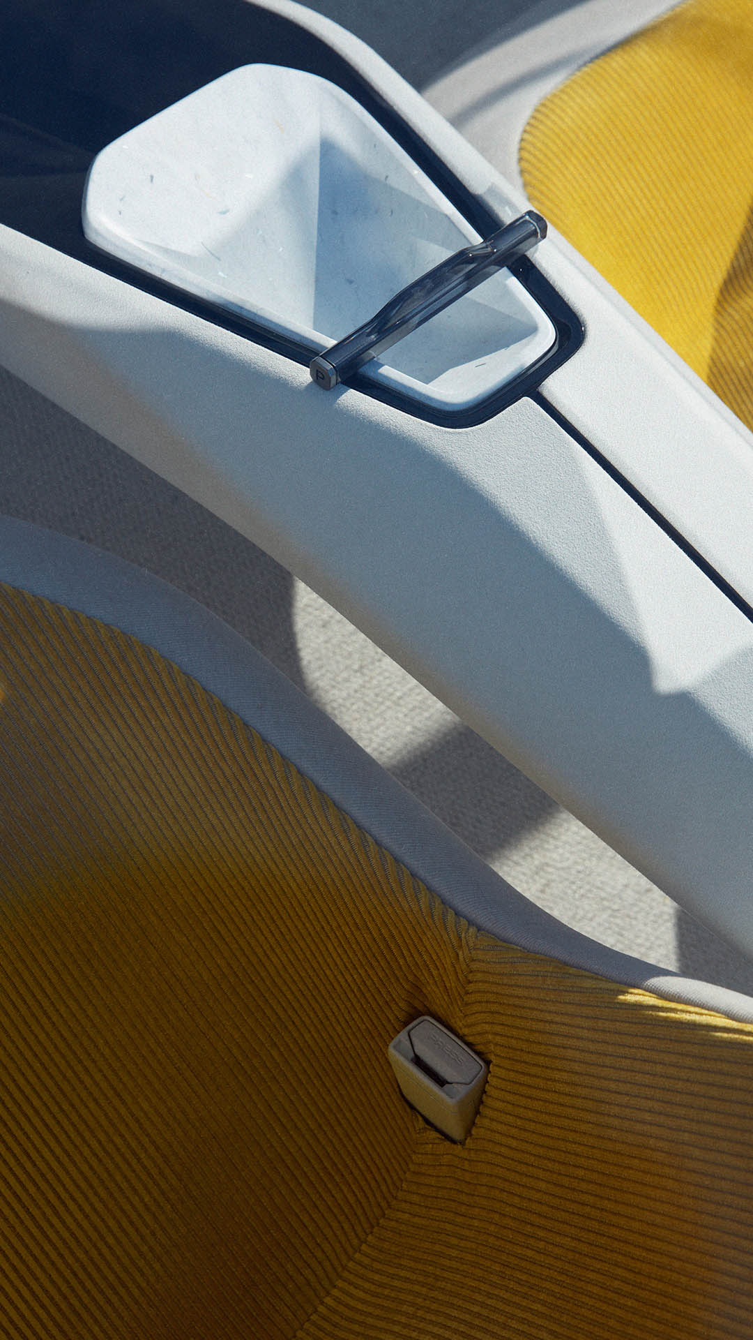Μια βάση επαγωγικής φόρτισης smartphone και ο επιλογέας κίνησης του αυτοκινήτου είναι τα μόνα βασικά χαρακτηριστικά στην κεντρική κονσόλα και το ταμπλό του αυτοκινήτου πέρα από την κεντρική οθόνη, ενώ η καμπίνα είναι διακοσμημένη με φωτεινά υφάσματα. Το εσωτερικό είναι εντελώς απαλλαγμένο από διακοσμητικό χρώμιο ή δέρμα, βελτιώνοντας τα διαπιστευτήρια βιωσιμότητας του αυτοκινήτου.