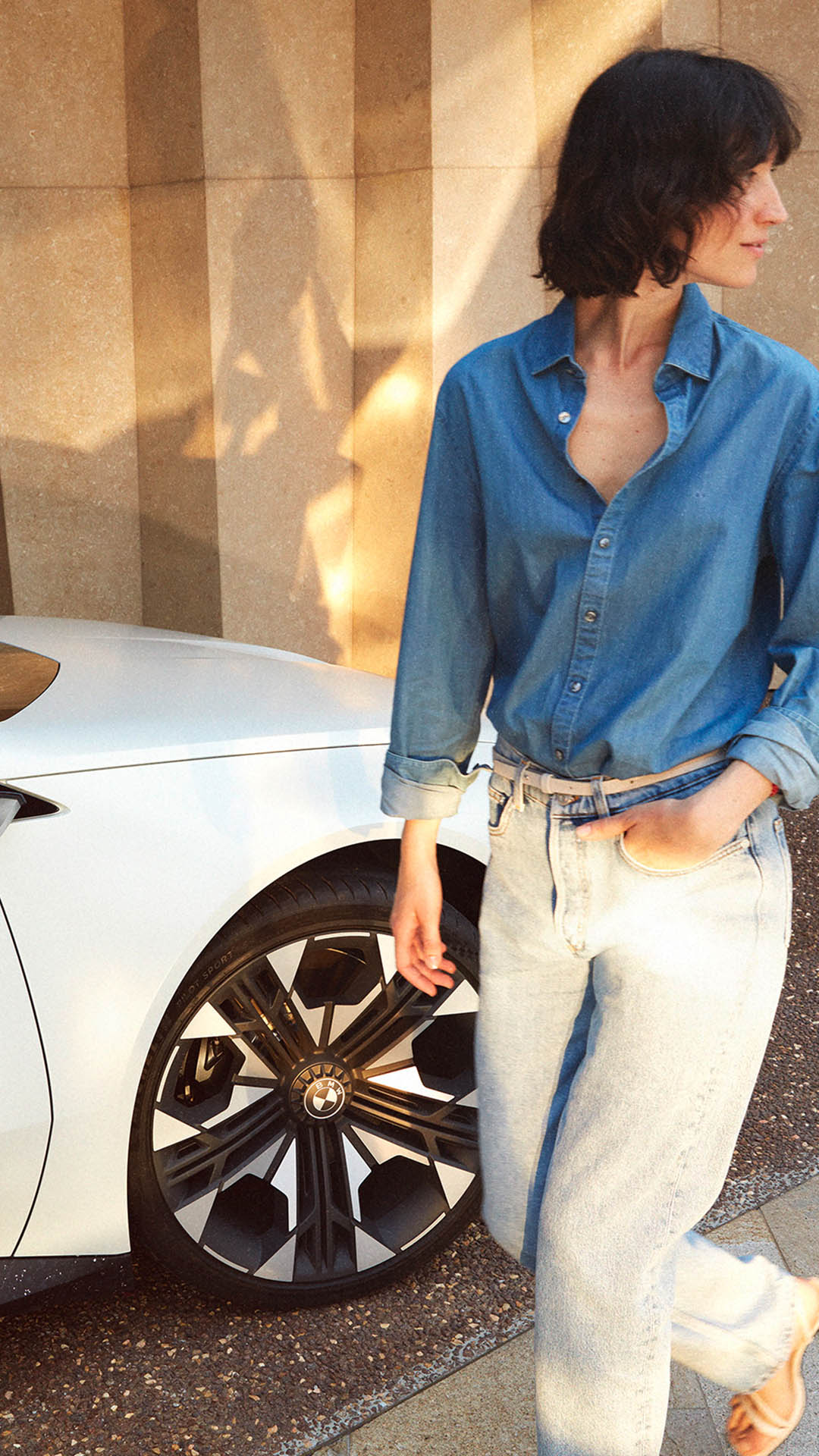 Χρησιμοποιώντας την τεχνολογία E-Ink, αυτά τα εικονίδια μπορούν να προβάλλουν κινούμενα σχέδια και άλλα μηνύματα, ενώ η εξέλιξη της τεχνολογίας για τη Vision Neue Klasse διαθέτει δυνατότητα τρισδιάστασης αναπαράστασης για να δίνει στα πάνελ την αίσθηση του βάθους. Τα πάνελ E-Ink υπάρχουν επίσης κάτω από το τζάμι των παραθύρων, επιτρέποντας την ψηφιακή απεικόνιση άλλων κλασικών σχεδιαστικών χαρακτηριστικών της BMW, όπως η διαμόρφωση Hofmeister, ενώ πιο χαμηλά στο αμάξωμα, οι γυαλιστερές μαύρες περιοχές είναι κατασκευασμένες από ανακυκλωμένα υλικά.