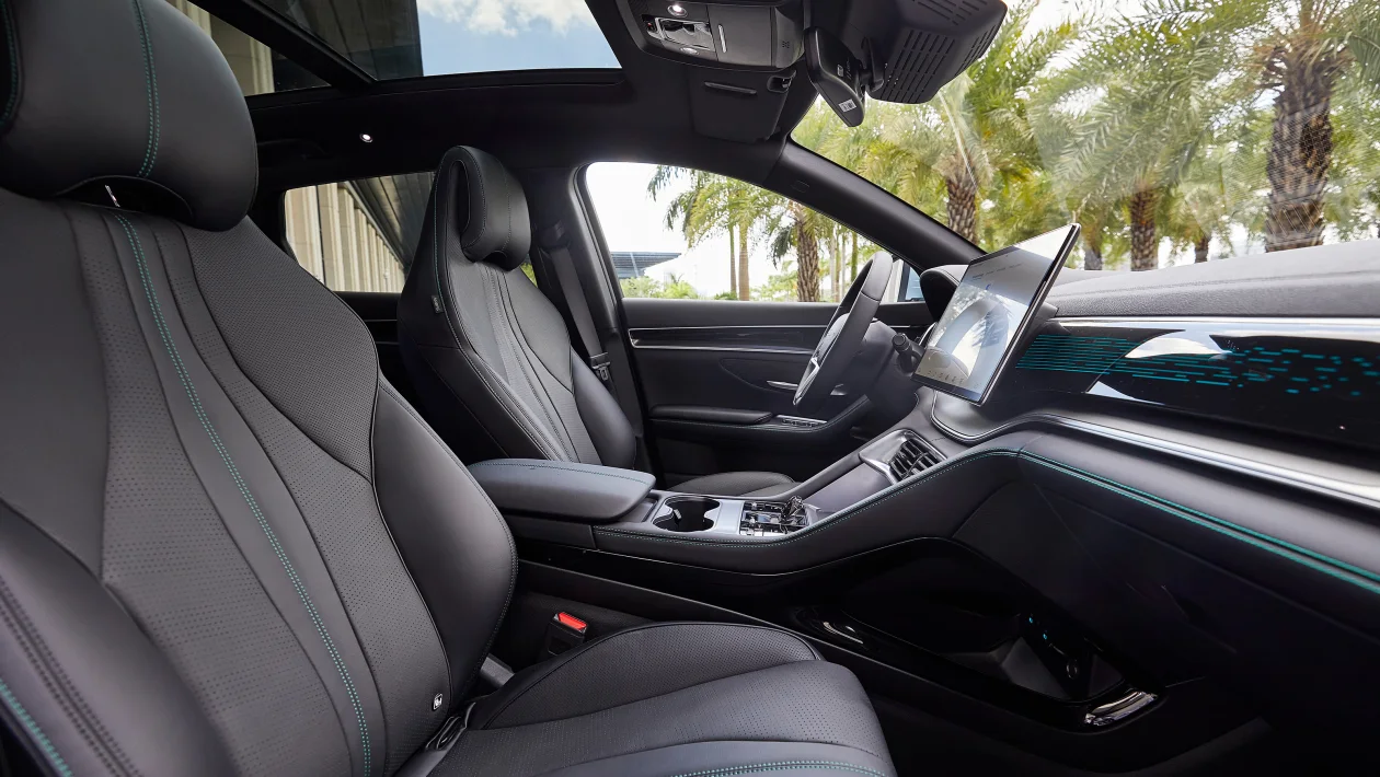 Στο εσωτερικό κυριαρχεί η μεγάλη κεντρική οθόνη αφής 15,6’’, ενώ το Seal U θα προσφέρει και δυνατότητα εξωτερικής παροχής ενέργειας V2L (Vehicle-to-Load).