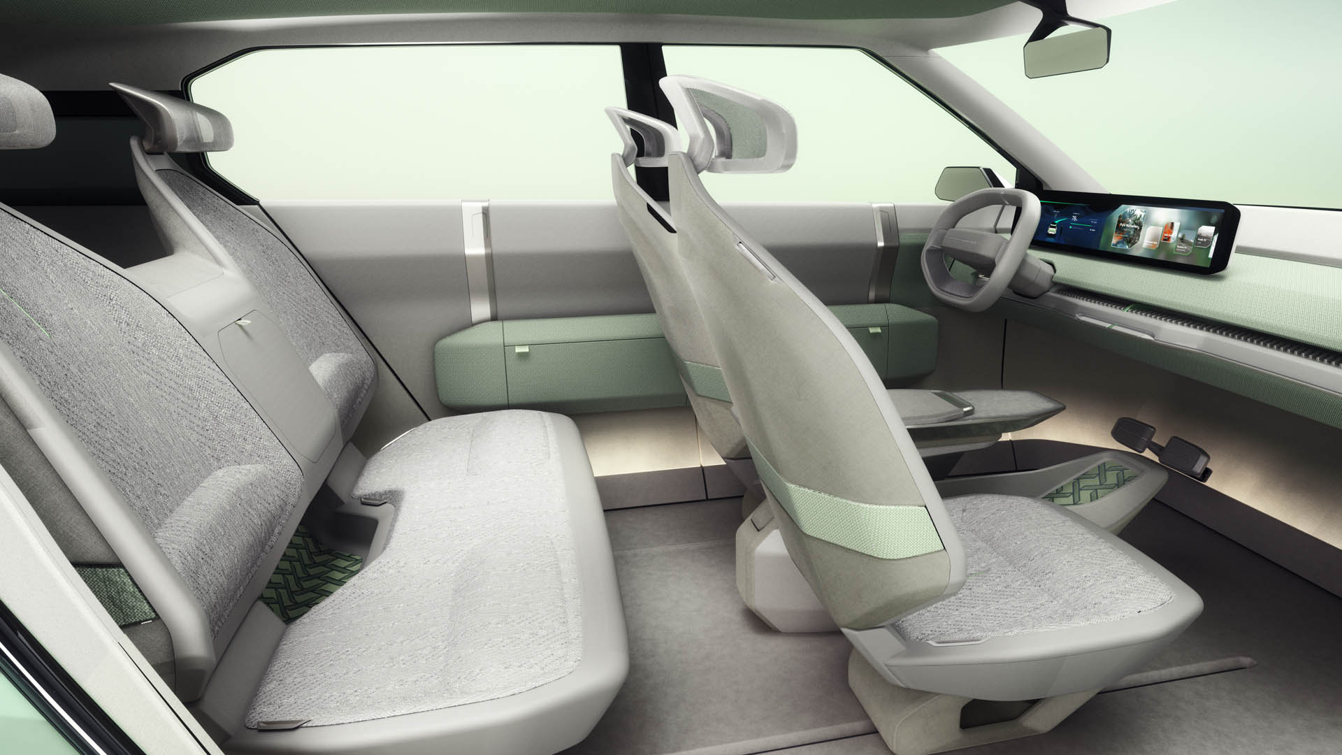 Η επιπλέον πρακτικότητα έρχεται με τη μορφή πίσω καθισμάτων που έχουν τη δυνατότητα να αναδιπλωθούν προς τα επάνω για την αποθήκευση μεγάλων αντικειμένων όπως ηλεκτρικά σκούτερ και ποδήλατα, σύμφωνα με την Kia.
