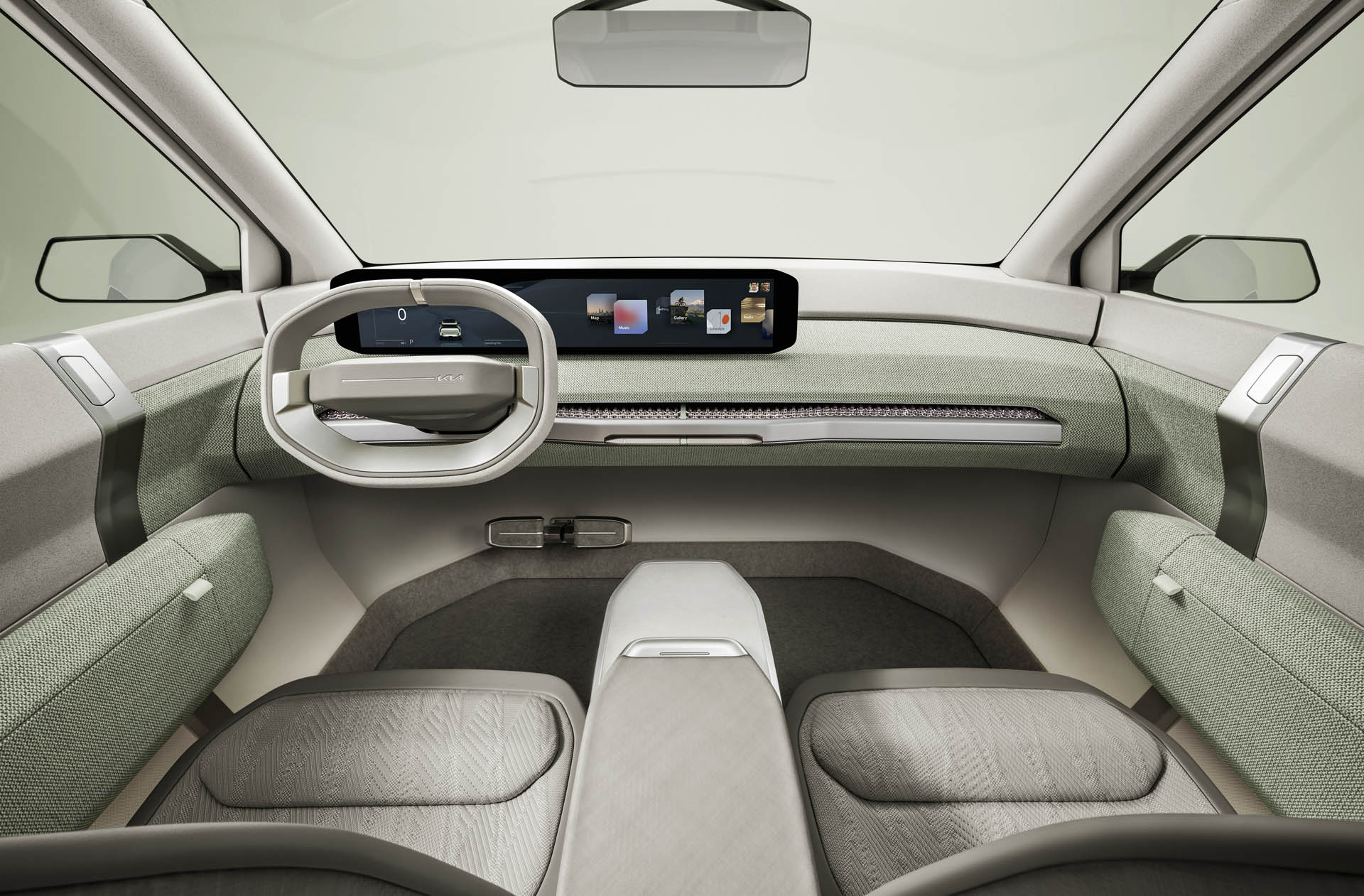 Το εσωτερικό δανείζεται πολλά στοιχεία από το EV9 Concept με οβάλ τιμόνι, μια αιωρούμενη κεντρική κονσόλα, φωτισμό περιβάλλοντος, μια τεράστια διπλή οθόνη που κάθεται στο ταμπλό και μια αρκετά μινιμαλιστική διάταξη που συμβάλλει στην προώθηση της αίσθησης του χώρου.