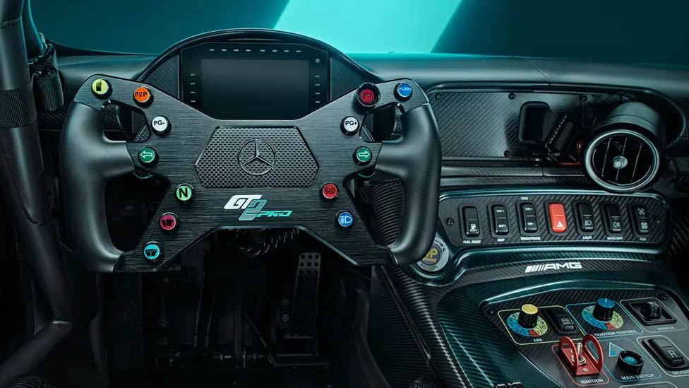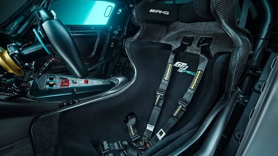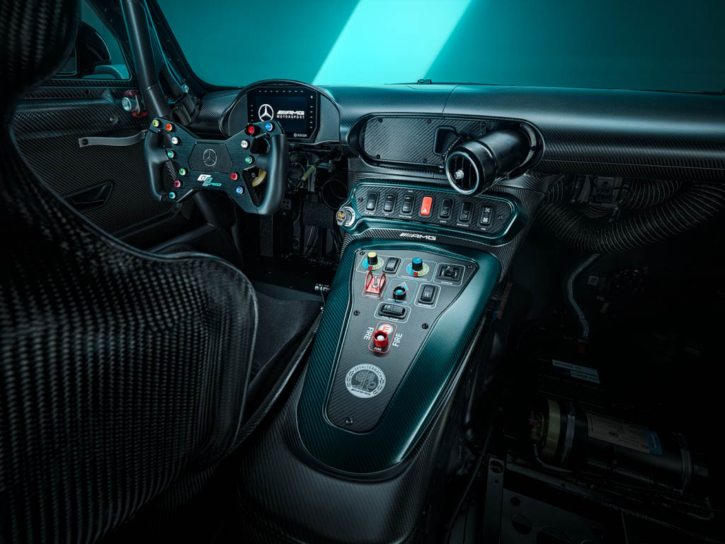 Το εσωτερικό είναι εξίσου προσανατολισμένο στη χρήση σε πίστες, με μπάκετ καθίσματα από ανθρακονήματα και απογυμνωμένη καμπίνα. Η κεντρική κονσόλα και το ταμπλό έχουν ανασχεδιαστεί με έμφαση στον οδηγό. Διακόπτες όπως του πυροσβεστήρα, της διακοπής λειτουργίας του κινητήρα και της αντλίας καυσίμου έχουν εμφανιστεί με την αφαίρεση της οθόνης αφής της AMG GT.
