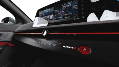 Η καμπίνα αποπνέει έναν premium αέρα με σπορ τόνο που απορρέει από τα ειδικά σχεδιασμένα καθίσματα και τον διάκοσμο της NISMO.
