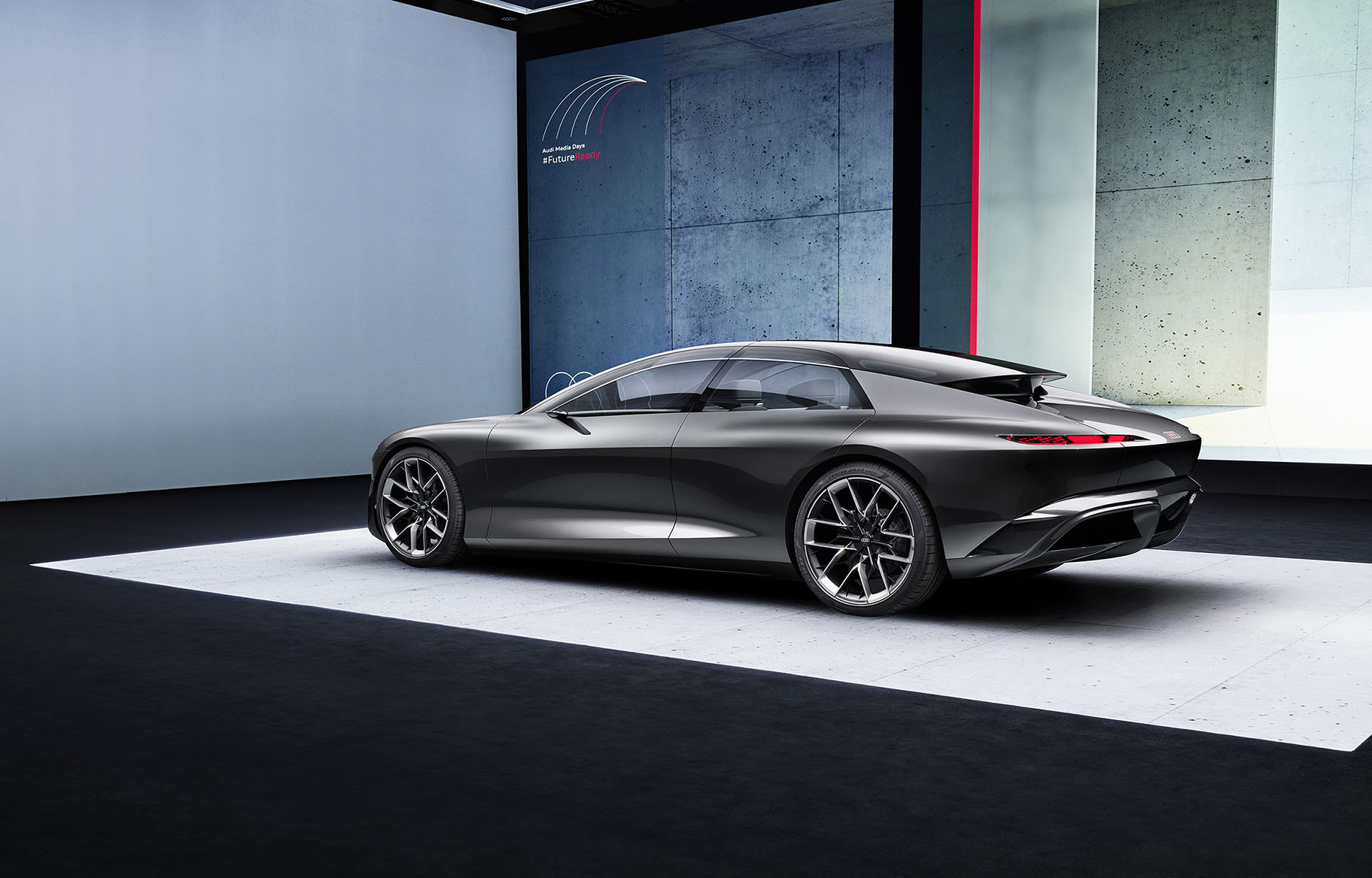 Το Audi grandsphere ξεχωρίζει από τις μεγάλες γυάλινες επιφάνειες και τη διάφανη οροφή, την απουσία κολόνας Β με τις εμπρός πόρτες να ανοίγουν αντίθετα από τις πίσω, αποκαλύπτοντας μία διάπλατη είσοδο στο όχημα. Οι οθόνες του πίνακα οργάνων και ελέγχου του πρωτότυπου μετατρέπονται σε οθόνες ψυχαγωγίας CinemaScope, μόλις αυτό αρχίζει να κινείται αυτόνομα, ενώ ταυτόχρονα πεντάλ και τιμόνι απομακρύνονται από το οπτικό πεδίο των επιβαινόντων.
