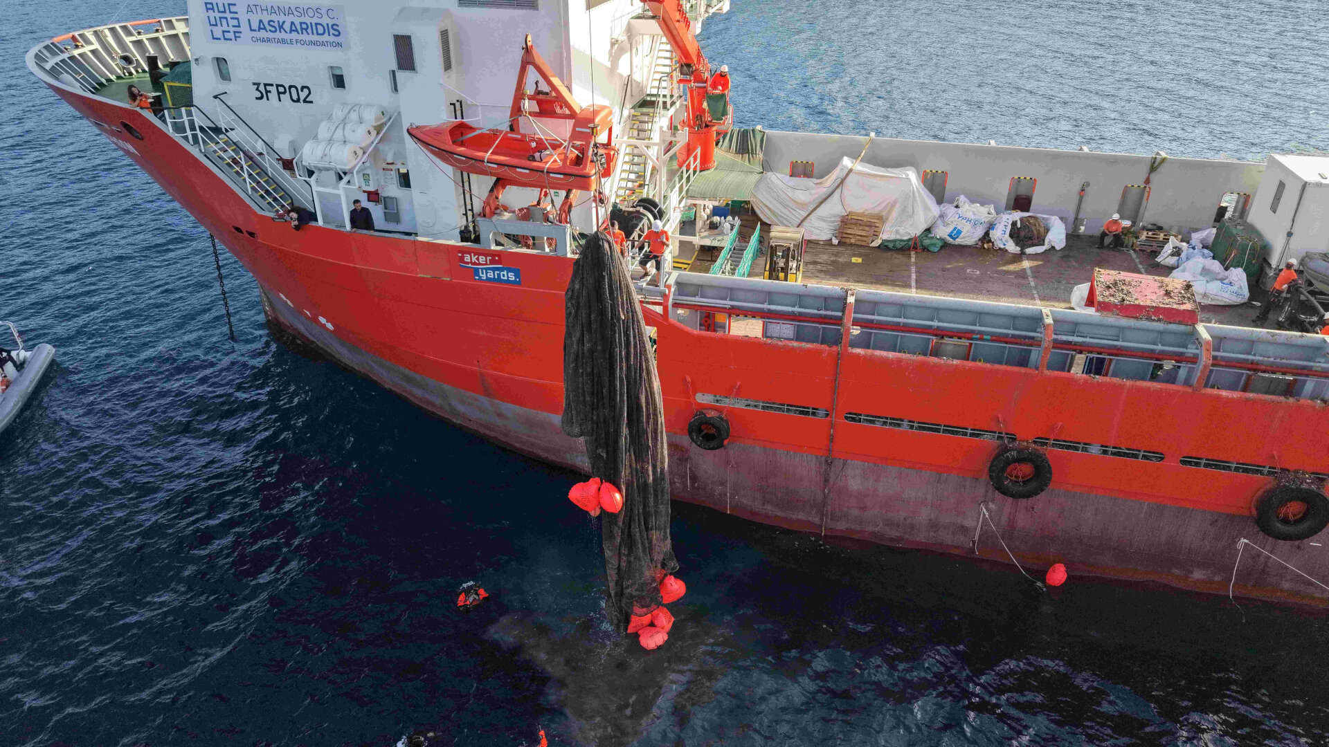 Μετά τον τεμαχισμό, τα απορρίμματα γέμισαν 12 βιομηχανικά κοντέινερ. Τα κατάλληλα δίχτυα θα προωθηθούν για μετατροπή σε νήμα ECONYL, ενώ τα υπόλοιπα υλικά θα σταλούν σε τοπικές μονάδες ανακύκλωσης.