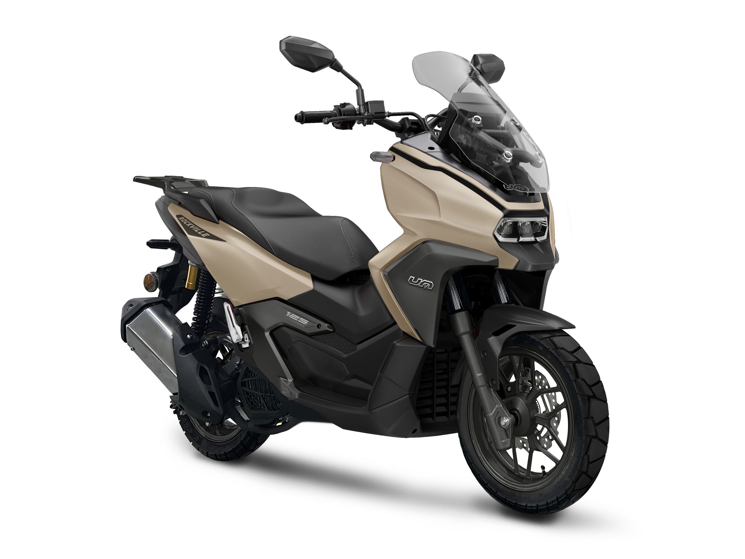 Παράλληλα, στο περίπτερο της UM Motorcycles, θα παρουσιαστεί και το νέο scooter Rockville, με κινητήρες 125 cc και 300 cc, 12,9 και 24,5 ίππων αντίστοιχα. Το νέο πολυτελές μοντέλο της UM έχει στοιχεία εξοπλισμού όπως η οθόνη TFT με δυνατότητα σύνδεσης κινητού, η θύρα USB, το keyless σύστημα εκκίνησης, η σέλλα 2 επιπέδων, αλλά και o ρυθμιζόμενος ανεμοθώρακας δύο θέσεων. Σε μηχανικό επίπεδο, το νέο μοντέλο έχει διπλά αμορτισέρ με δοχείο αερίου, traction control και δικάναλο ABS.