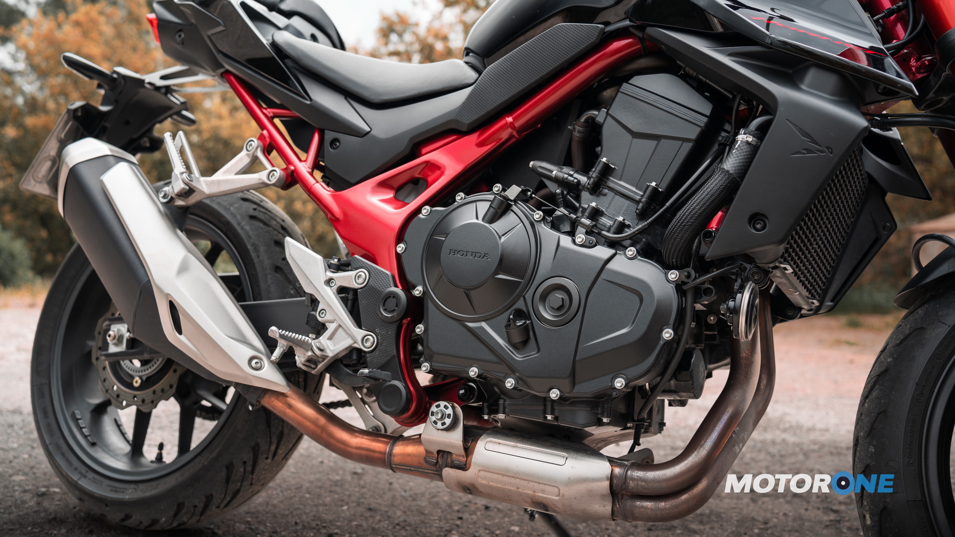 Όπως καταλαβαίνει κανείς, εδώ έχουμε το νέο κινητήρα που βρίσκει εφαρμογή στο εμπορικότερο όνομα Transalp, αλλά και στην αναμενόμενη ρετρό CB 750. Ο ολοκαίνουργιος κινητήρας είναι δικύλινδρος εν σειρά, 8βάλβιδος με χωρητικότητα 755 κ.εκ., μέγιστη ισχύ 92 ίππους και ροπή 75 Nm. Ικανή απόδοση που έχει να κινήσει βάρος 190 κιλών (με υγρά), καθιστώντας την Hornet κορυφαία στην κατηγορία των μεσαίων σε αναλογία κιλών ανά ίππο: 2,1.
