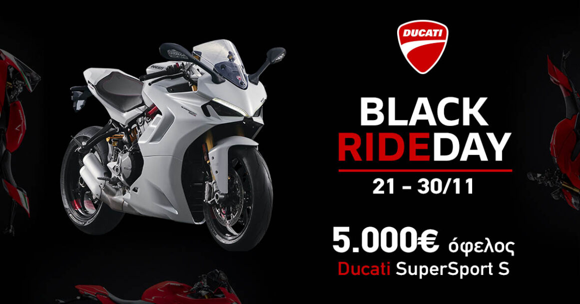 Η Ducati συμμετέχει φέτος στο θεσμό του Black Friday, μεταξύ 21 και 30 Νοεμβρίου, με προσφορές που μπορούν να αποφέρουν όφελος έως και 5.000 ευρώ.