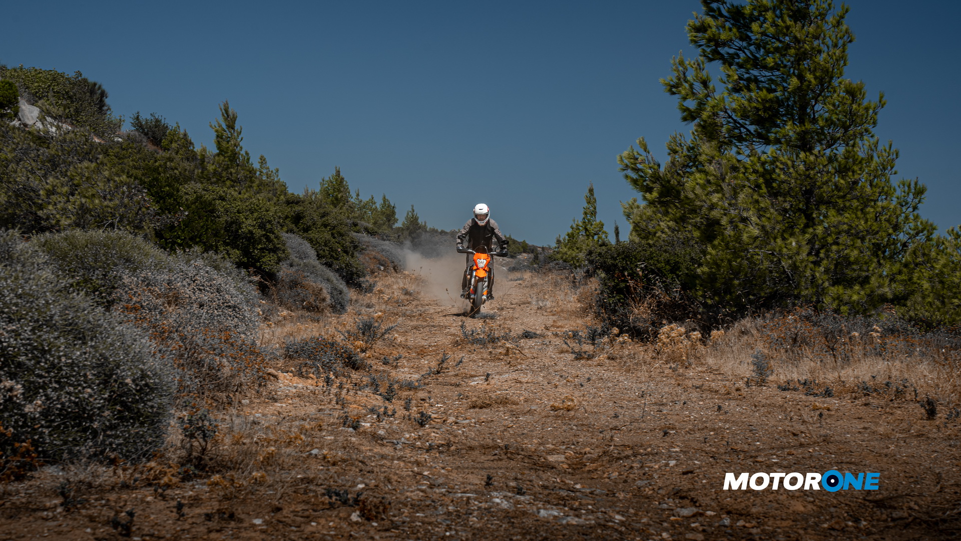 Με το Quickshifter απλοποιείς τις γρήγορες προς τα πάνω αλλαγές στο 6άρι κιβώτιο ταχυτήτων και η 690 Enduro R κάνει την πλάκα της στις επιταχύνσεις αφήνοντας πίσω της ικανές μοτοσυκλέτες μεγαλύτερου κυβισμού και όλα αυτά με τη σούζα στο τσεπάκι της. Αν έχεις επιλέξει τον χάρτη 1, δεν θα τη ζήσεις και απλά θα διακτινίζεσαι με τον μονοκύλινδρο να λυσσάει.