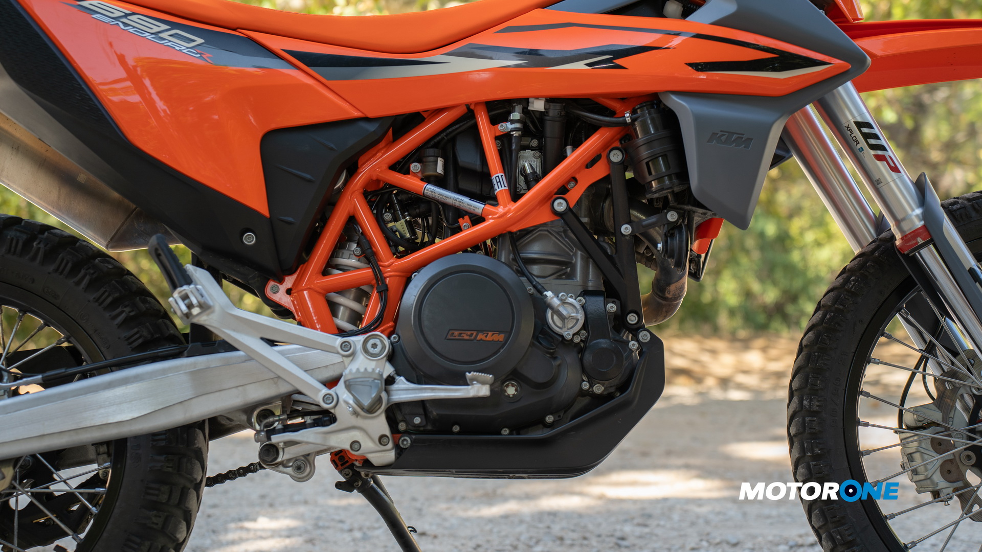 Από την 690 Enduro R δεν θα λείψει ποτέ η δύναμη για να προβείς σε βελτιώσεις. Στροφάρει απίστευτα για το μέγεθος του πιστονιού του και εκεί που άλλα μονοκύλινδρα λαχανιάζουν και αρνούνται, αυτό ανεβάζει σαν 250άρι. Ακόμα και αν πετάξεις το ανοξείδωτο καζάνι εκεί πίσω που έχει το ρόλο εξάτμισης για χάρη ενός after market, θα κερδίσεις δυο – τρία κιλά βάρος, θα ανακουφίσεις την περιοχή και τον κινητήρα από τις υψηλές θερμοκρασίες, όμως θα χάσεις την ήσυχη λειτουργεία του μονοκύλινδρου. Θα κερδίσεις βέβαια λίγο απόδοση και μπάσο ήχο.