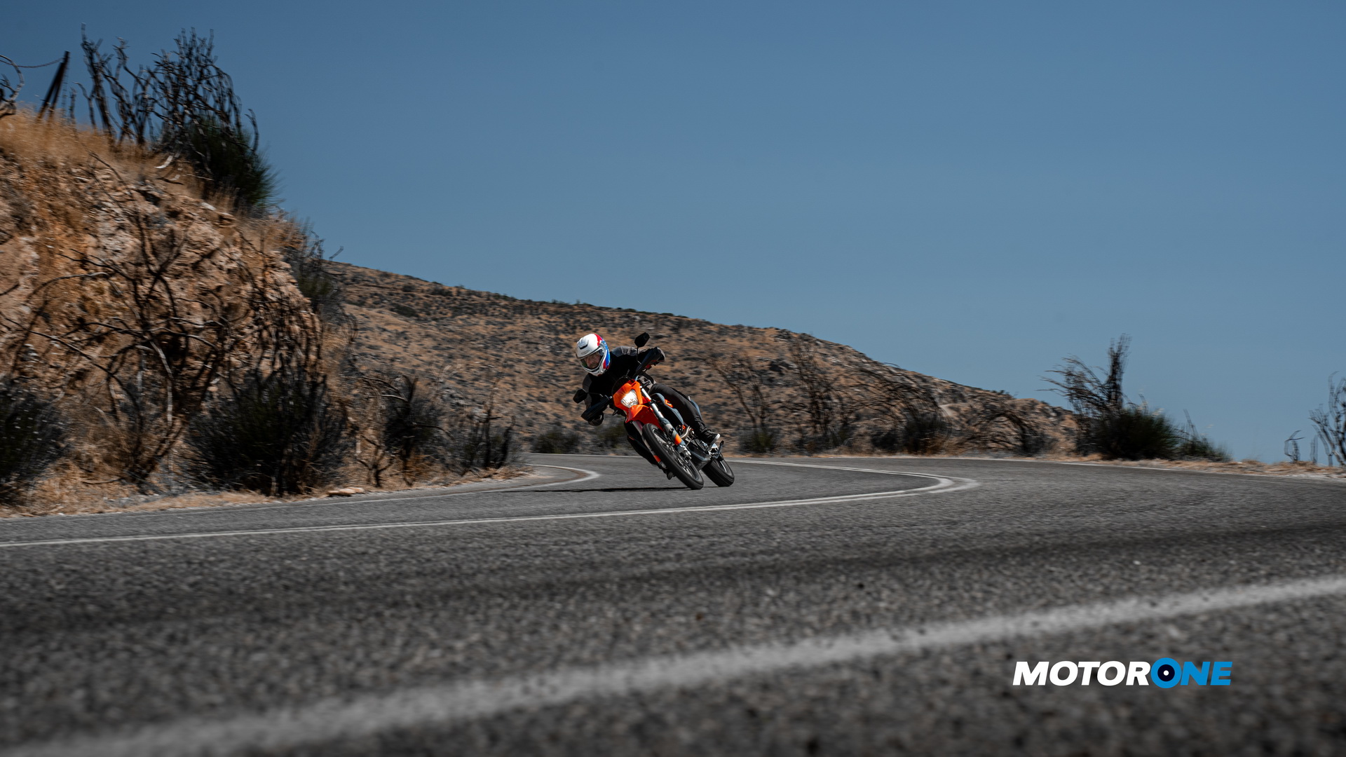 Υπολόγισε τώρα και το βάρος που πλήρες υγρών δεν ξεπερνά τα 160 κιλά και έχεις μια πρώτη ιδέα του τι πρόκειται να γευτείς στην επιθετική γκαζιά. Αν έχεις εμπειρία από Ιαπωνικά μονοκύλινδρα παρόμοιου κυβισμού κάνε reset – alt – delete στο μυαλό σου και πάμε από την αρχή.