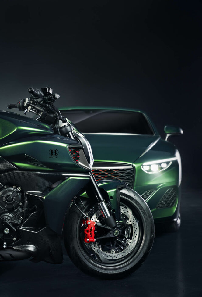 Βασίζεται στη νέα Ducati Diavel V4, η οποία εξαρχής δεν ήταν καθόλου ταπεινή, αλλά οι σχεδιαστές της Bentley συνεργάστηκαν με τη Ducati για να δημιουργήσουν μια εντελώς νέα εμφάνιση για τη μοτοσυκλέτα, εμπνευσμένη από την εκατομμυρίων ευρώ Bentley Batur. Μόλις 18 Batur κατασκευάστηκαν, όλες χειροποίητες από το τμήμα Mulliner της Bentley, ενώ ο σχεδιασμός του αυτοκινήτου λέγεται ότι αποτελεί πρόγευση της εμφάνισης των μελλοντικών μοντέλων της Bentley.