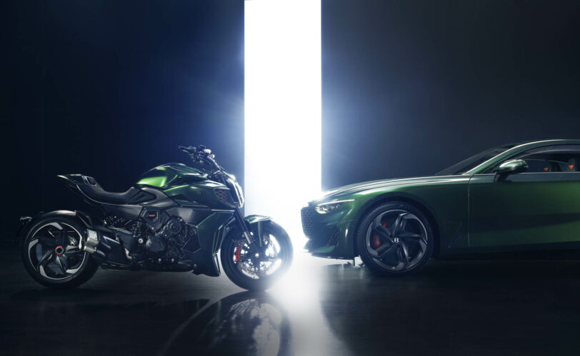 Η βρετανική αυτοκινητοβιομηχανία πολυτελών αυτοκινήτων Bentley και η ιταλική εταιρεία κατασκευαστής μοτοσυκλετών Ducati έχουν περίπου τόσα κοινά στοιχεία όσο fish & chips και το gelato, και όμως, οι δύο μάρκες συνεργάστηκαν για να δημιουργήσουν ένα απολαυστικά εξωφρενικό «δίτροχο έργο τέχνης», την Ducati Diavel for Bentley.