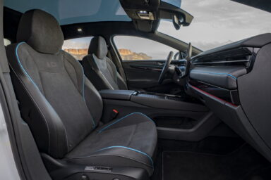 Με μέση κατανάλωση ενέργειας 14,1- 16,3 kWh ανά 100 χιλιόμετρα, προσφέρει αυτονομία έως 621 χιλιόμετρα στην έκδοση Pro, στοιχείο που το καθιστά ιδανικό για μεγάλες αποστάσεις. Η χωρητικότητας 77 kWh μπαταρία δείχνει ικανή – με βάση την κατανάλωση των περίπου 20 kWh/100 χλμ. που έδειχνε το αυτοκίνητο που οδηγούσαμε στα περίχωρα της Μασσαλίας – να προσεγγίζει τα 400 χλμ. αυτονομίας. Μια κατανάλωση ρεαλιστική για τον δυναμικό ρυθμό που κινηθήκαμε κυρίως στο ορεινό στροφιλίκι της Προβηγκίας. Σαφώς εύκολα μπορείς να κερδίσεις εκατό χιλιόμετρα επιπλέον αν οδηγείς με ελαφρύτερο πόδι, ενώ αναμένεται και η έκδοση με την μεγαλύτερη μπαταρία των 86 kWh, που εικάζει μια θεωρητική αυτονομία 700 χλμ. Η ταχύτητα φόρτισης για την “μικρή” μπαταρία φτάνει τα 175 kW σε DC ταχυφορτιστή, κάτι που στην πράξη σημαίνει ότι μπορεί να φτάσει από το 10% στο 80%, πριν συμπληρώσει το μισάωρο. Φυσικά και εδώ ισχύει η 8ετής εγγύηση (ή 160.000 χλμ.).