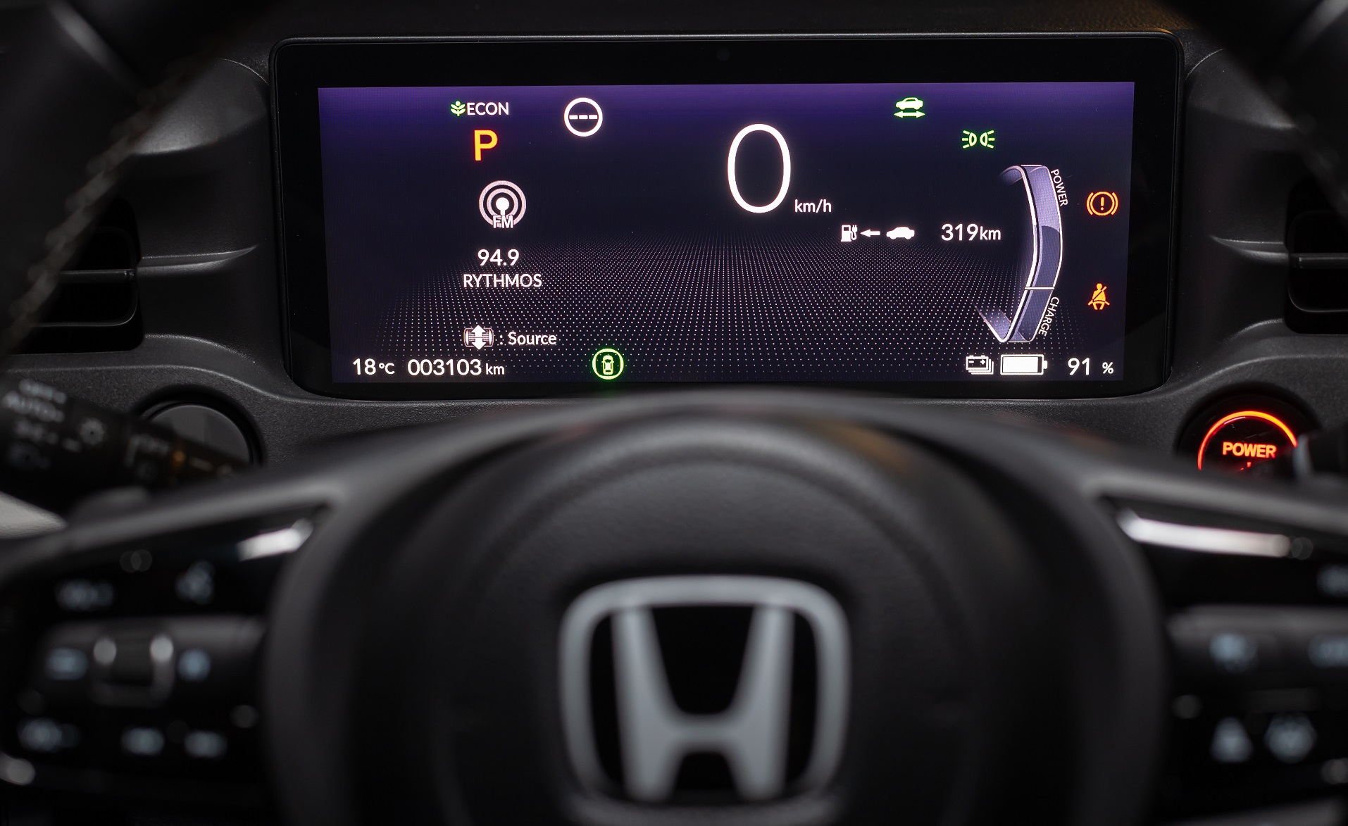 Ο οδηγός έχει μπροστά του έναν ευανάγνωστο ψηφιακό πίνακα οργάνων 10,25’’ με πληθώρα ενδείξεων για το όχημα και την οδήγηση. Στα δεξιά του, στην κεντρική κονσόλα βρίσκονται οι διακόπτες επιλογής κίνησης (P, R, N, D) αντί του κλασικού λεβιέ, οι οποίοι είναι γνώριμοι στους οδηγούς Honda αλλά απαιτούν από όλους τους υπόλοιπους χρόνο για να τους συνηθίσουν.