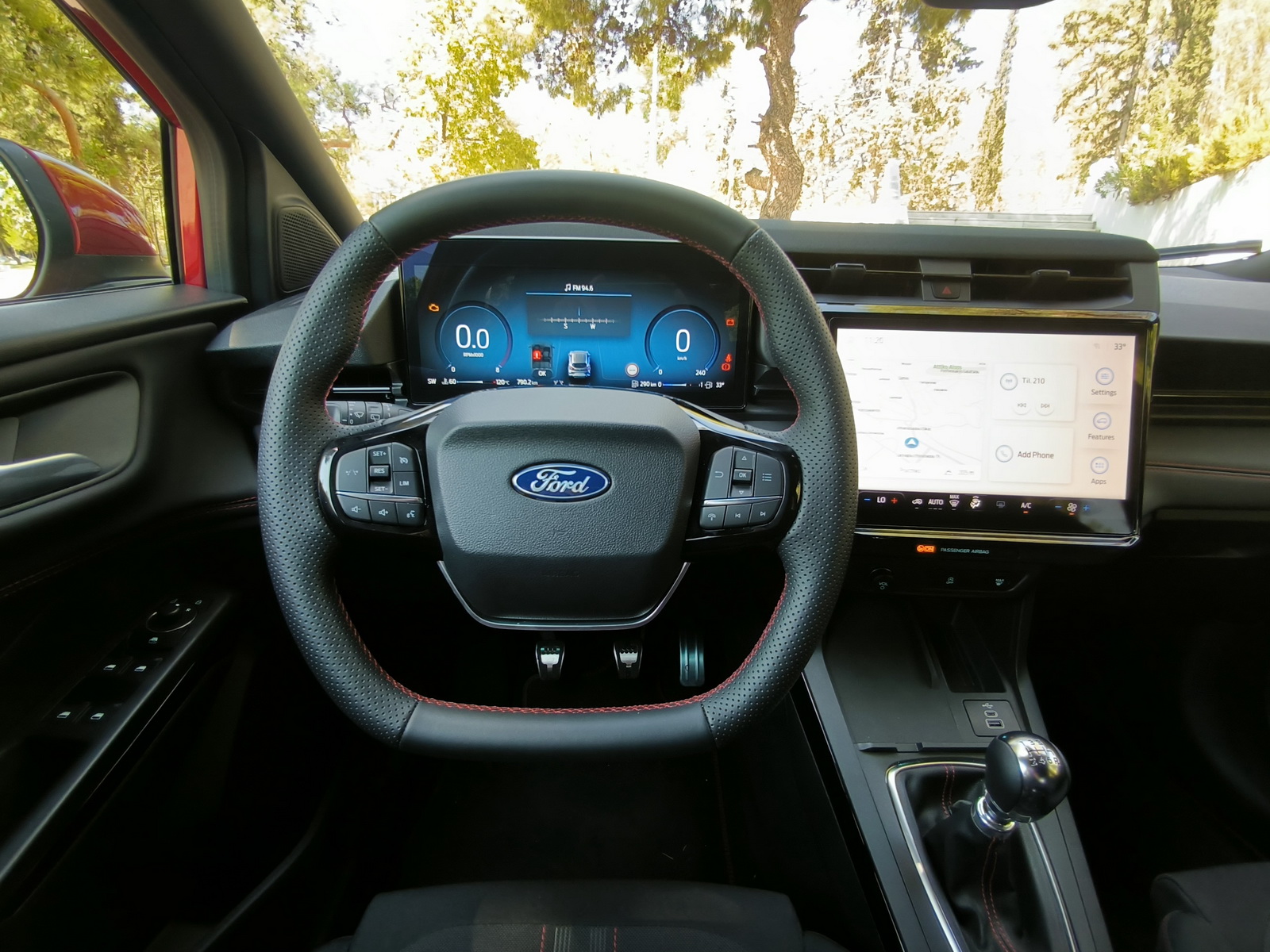 Η μία αφορά τον πλήρως ψηφιακό πίνακα οργάνων 12,8’’ και η δεύτερη το infotainment SYNC 4 της Ford με οθόνη αφής 12’’, η οποία αιωρείται και έχει ελαφριά κλίση προς τον οδηγό. Το SYNC 4 διαθέτει διπλάσια υπολογιστική ισχύ σε σύγκριση με την απερχόμενη έκδοση, ασύρματη σύνδεση κινητού μέσω Apple CarPlay και Android Auto, βάση ασύρματης φόρτισης, μόντεμ 5G και προσωπικό βοηθό Alexa Built-in που απαντά σε ερωτήματα ή εντολές.